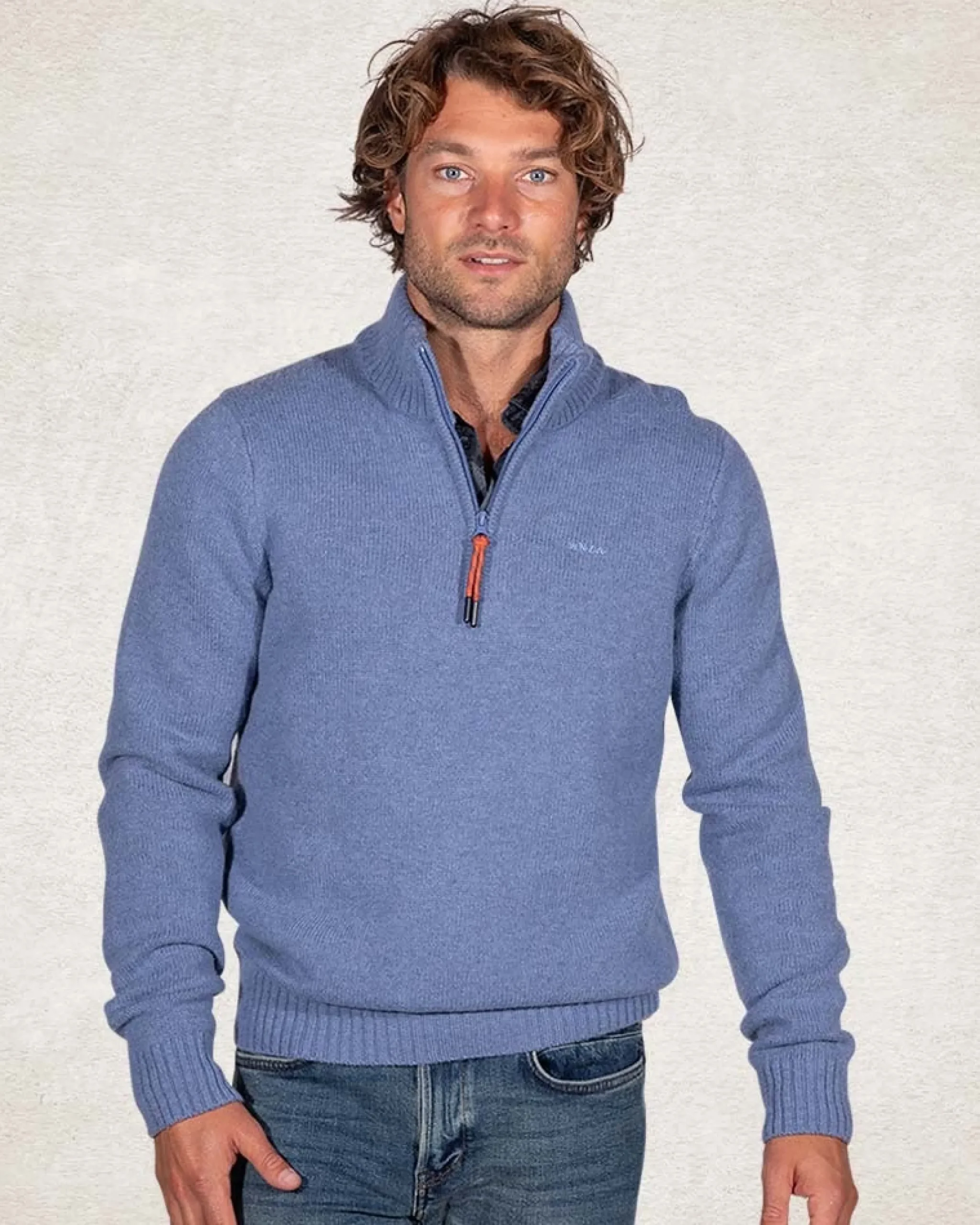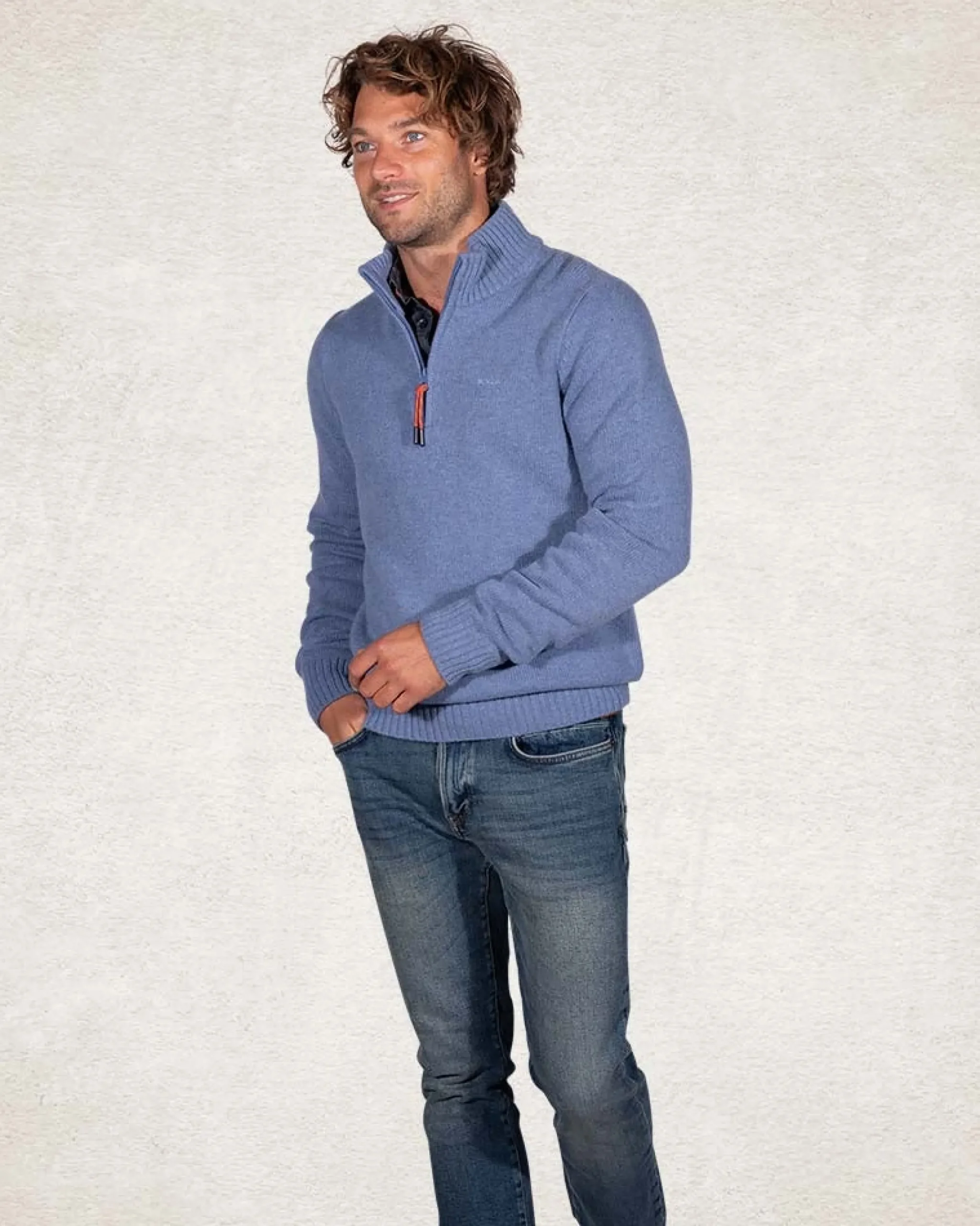 Trui met halve rits van wol mix – Cloudy Blue