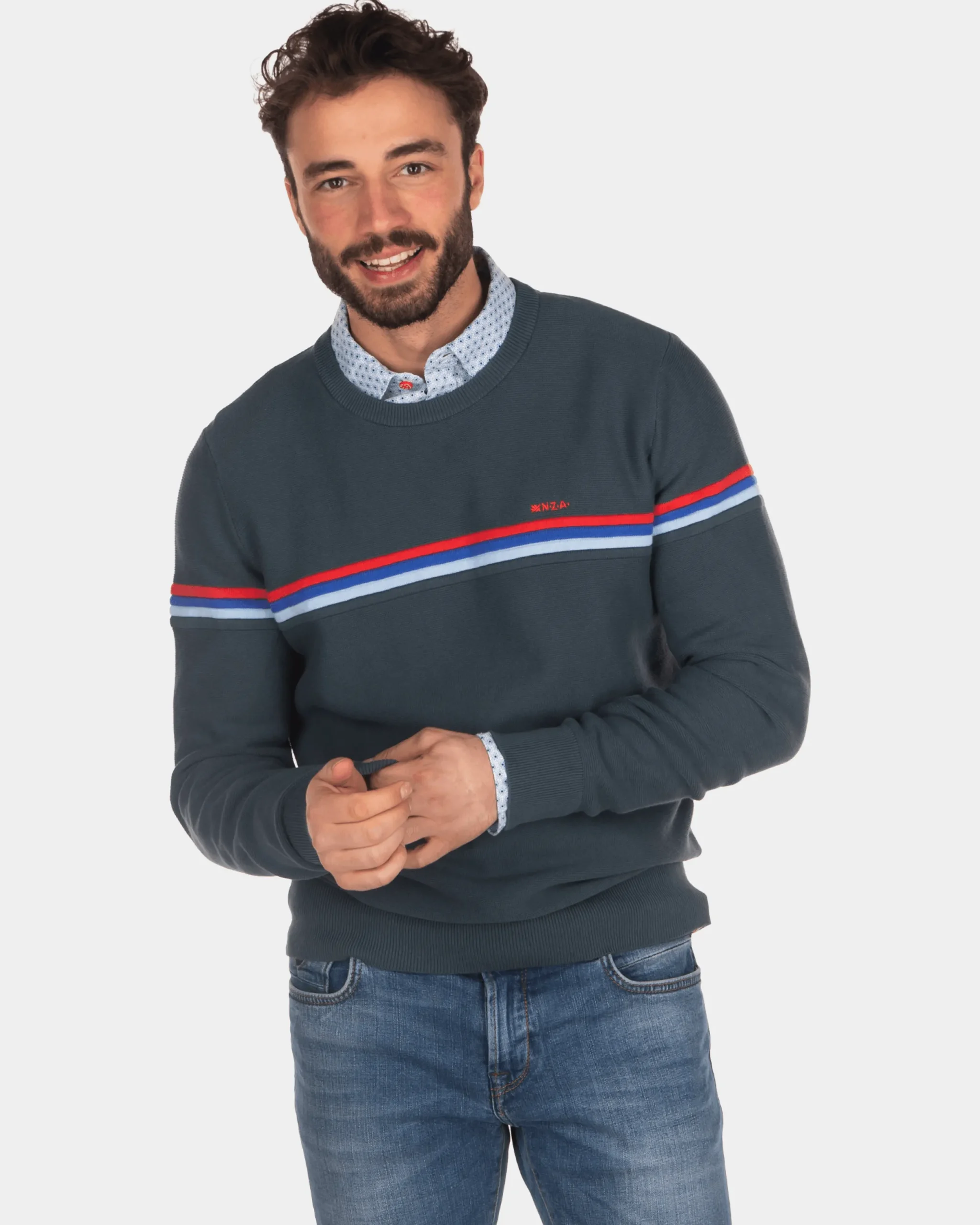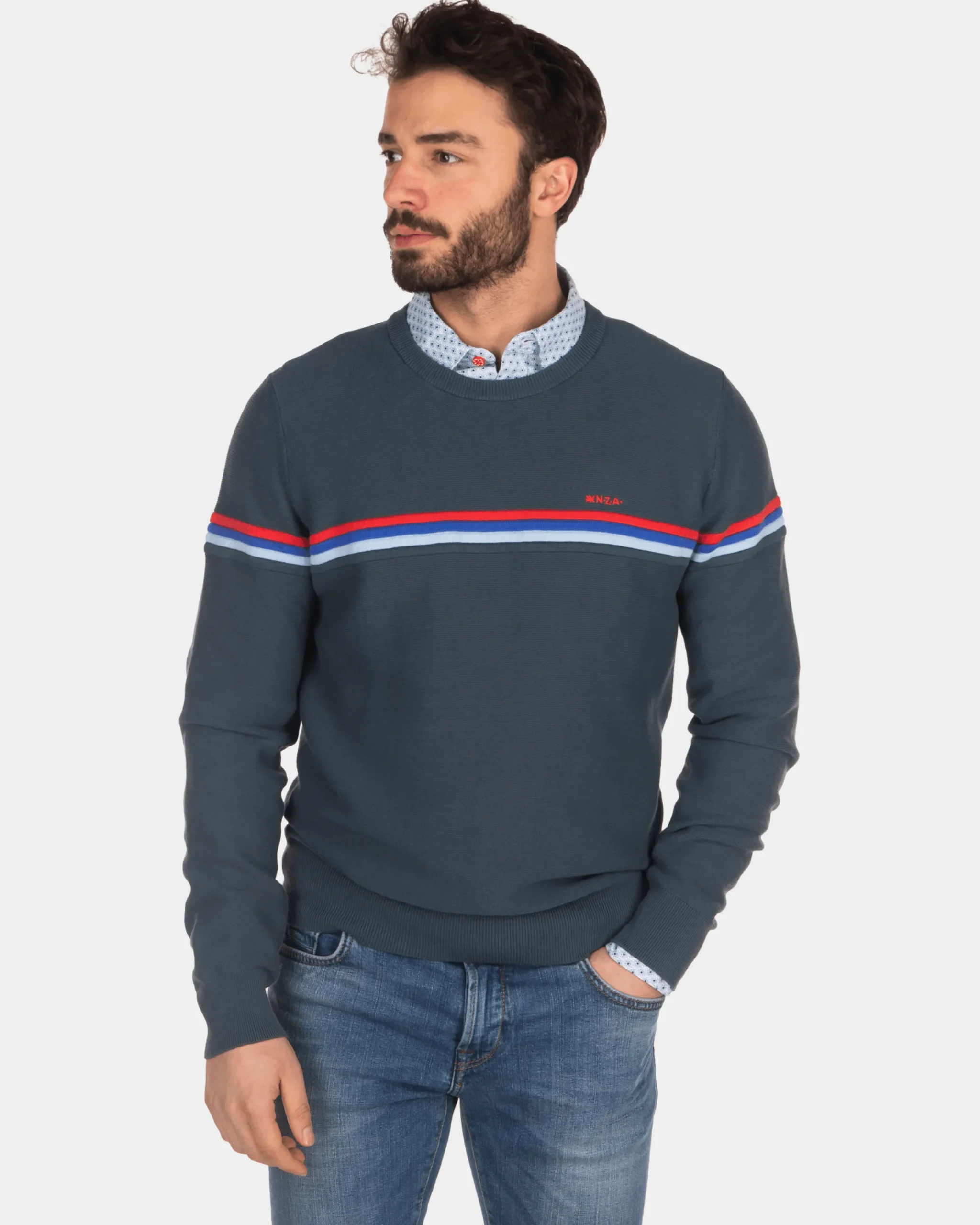 Trui met ronde hals en strepen – Green Grey