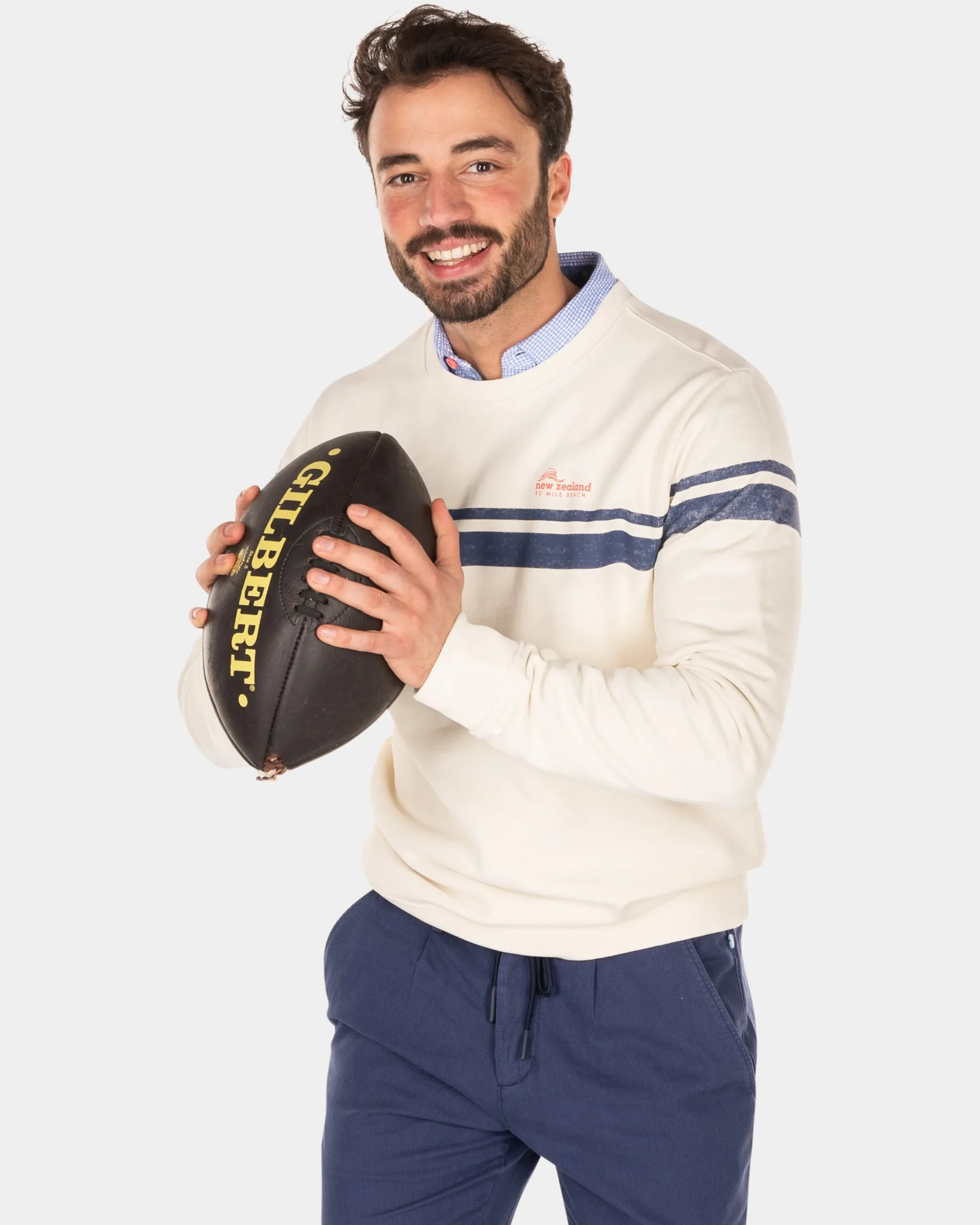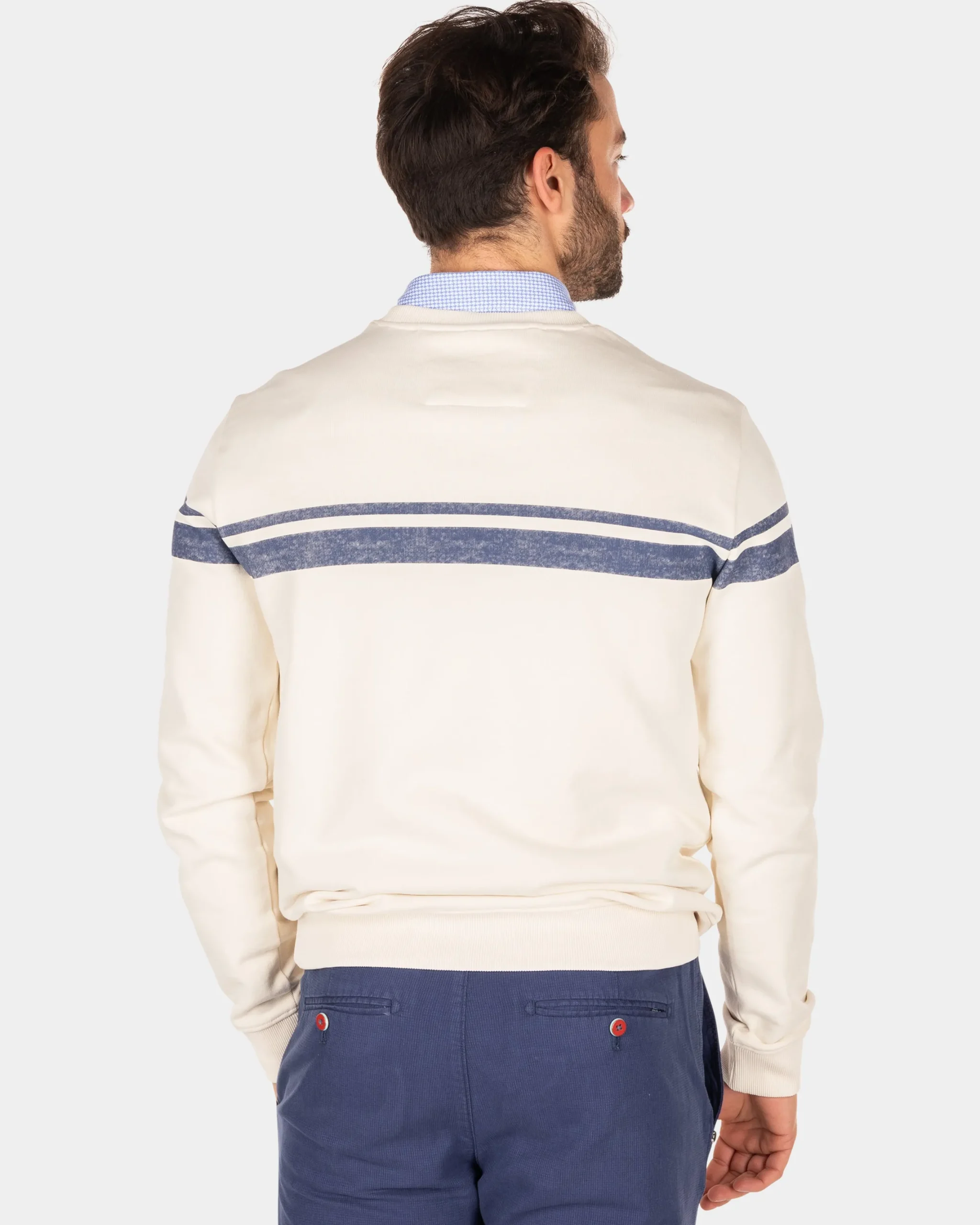 Witte sweater met blauwe streep – Cream