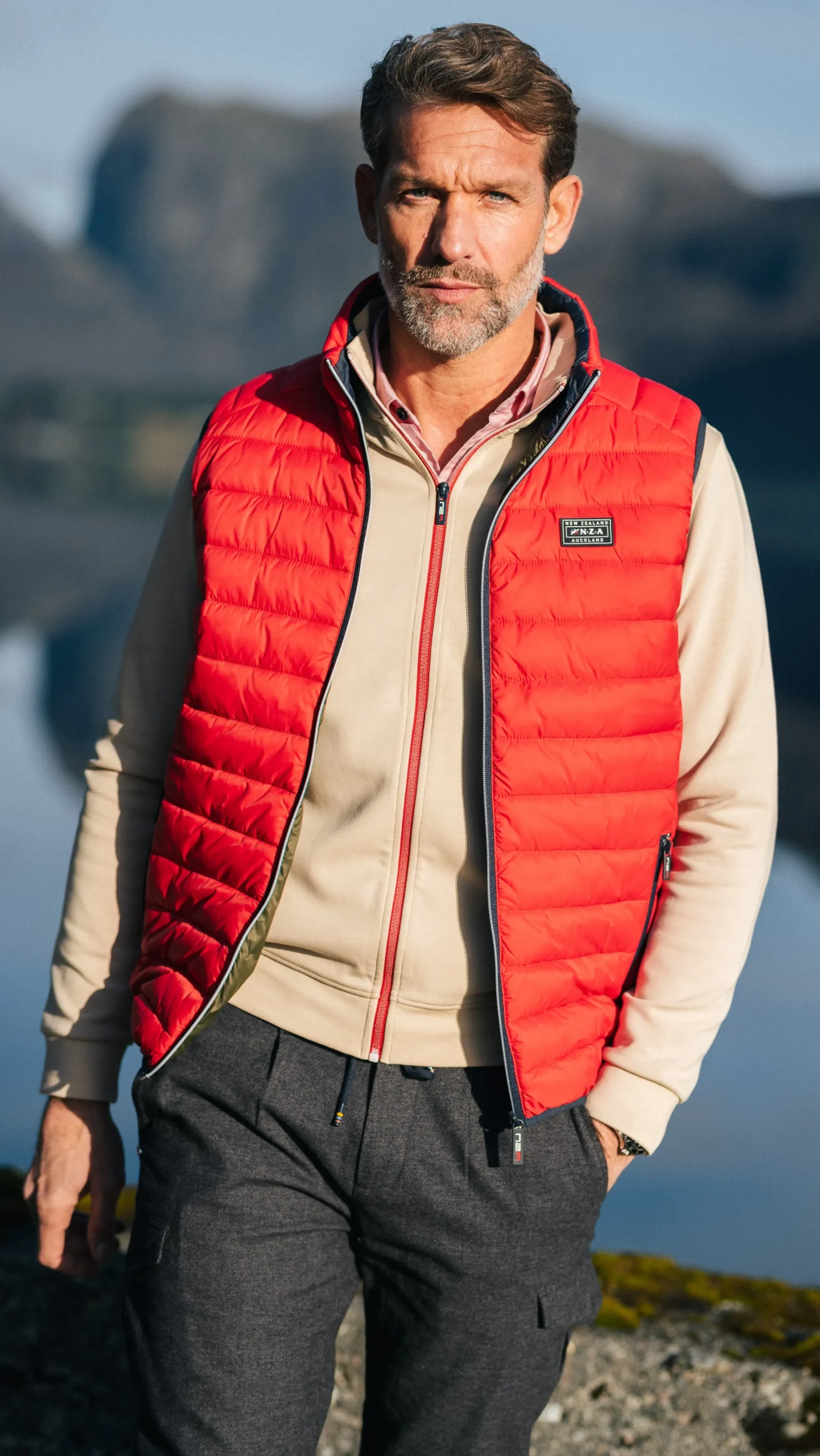 Zandkleurig vest met rode accenten – Shimmering Sand