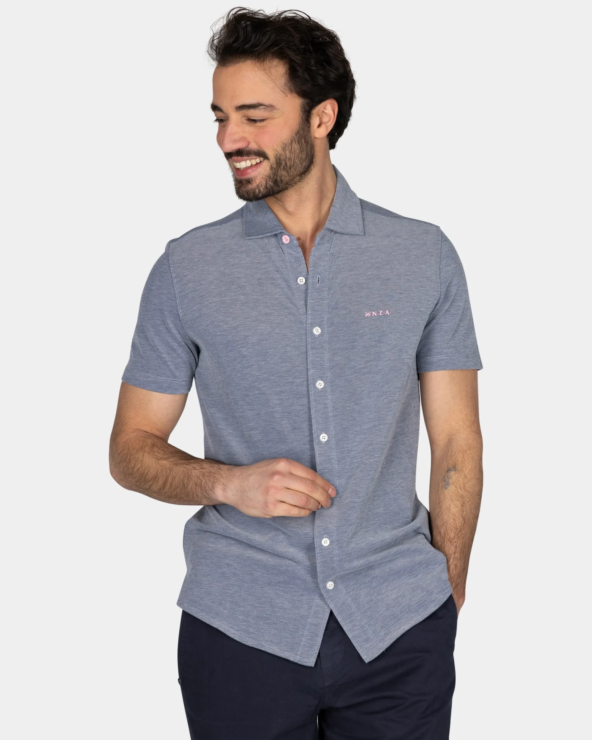 Blauw overhemd met korte mouw