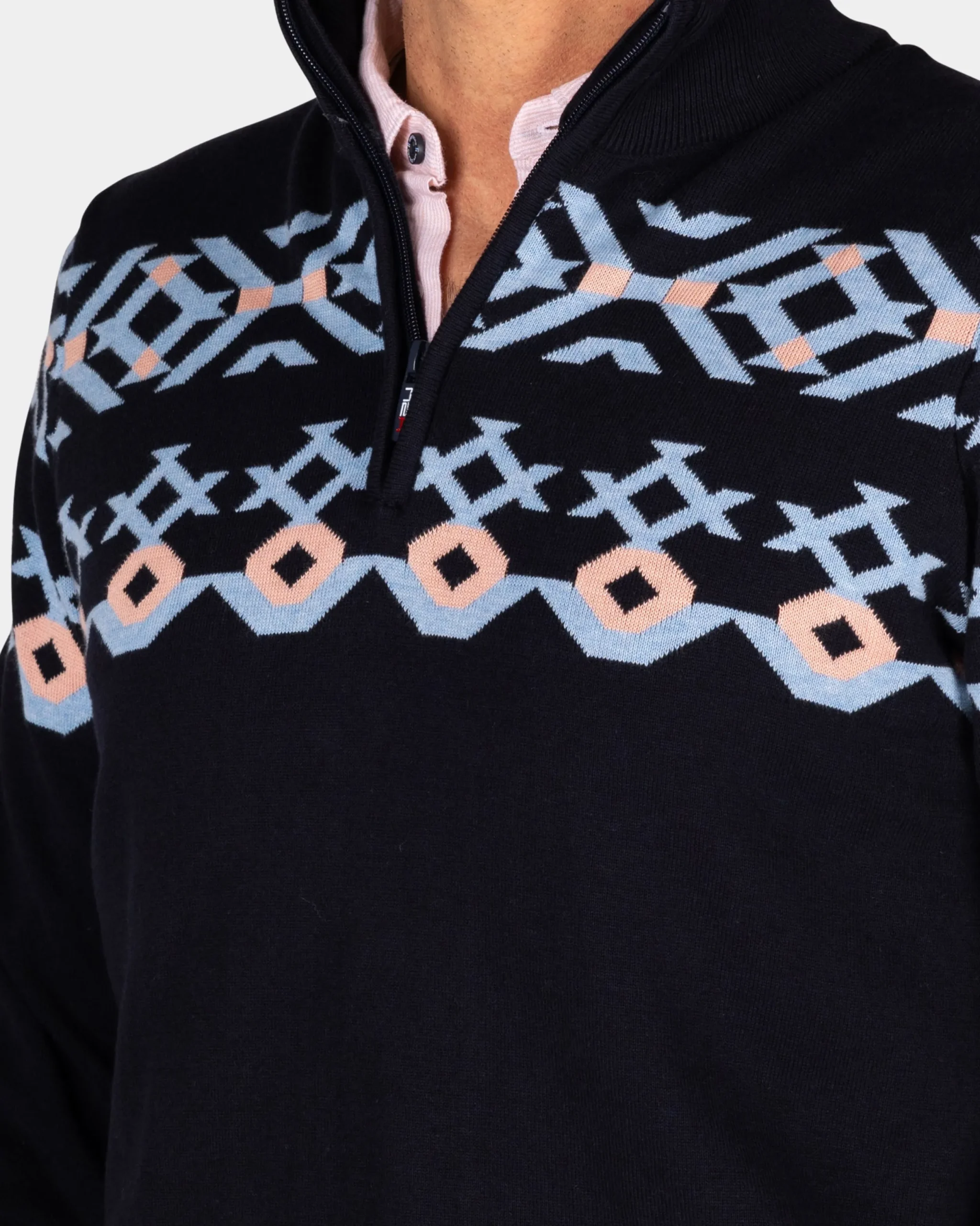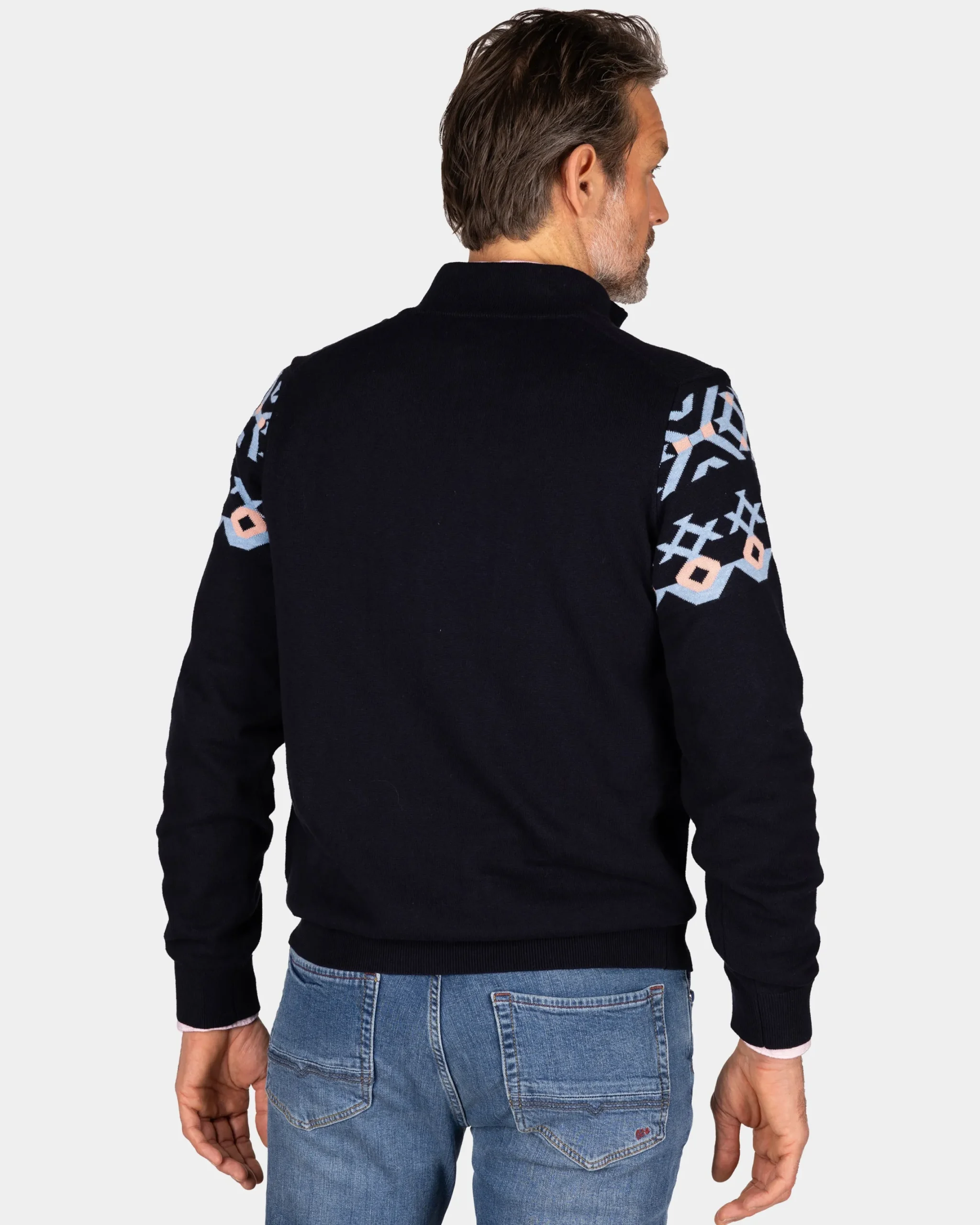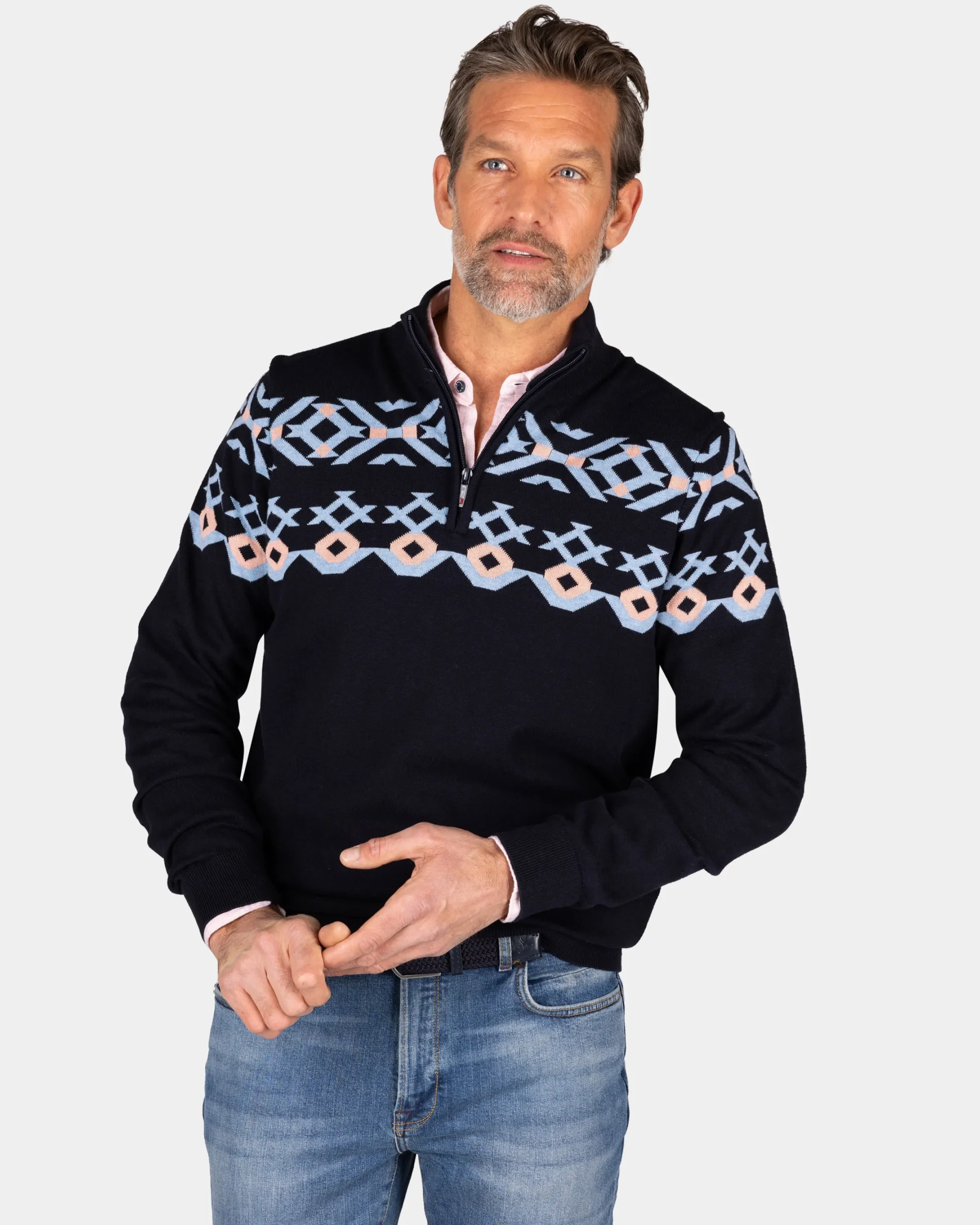 Blauwe katoenen trui met gebreid patroon