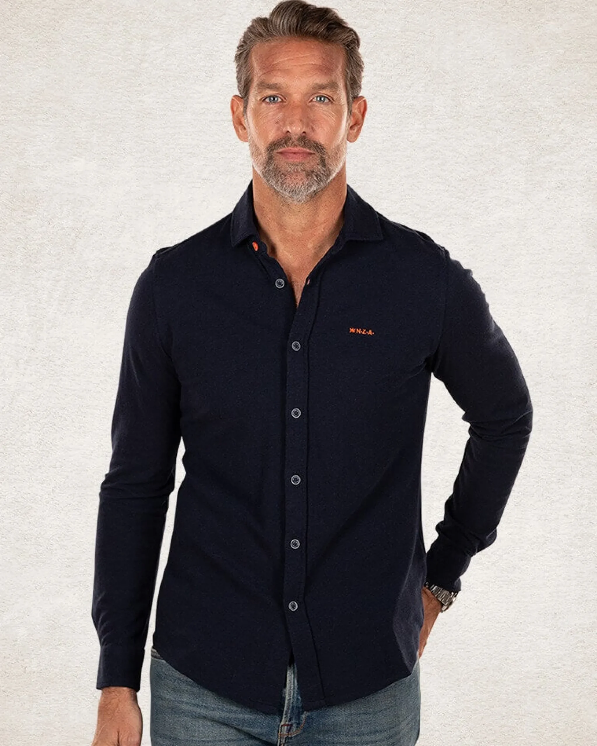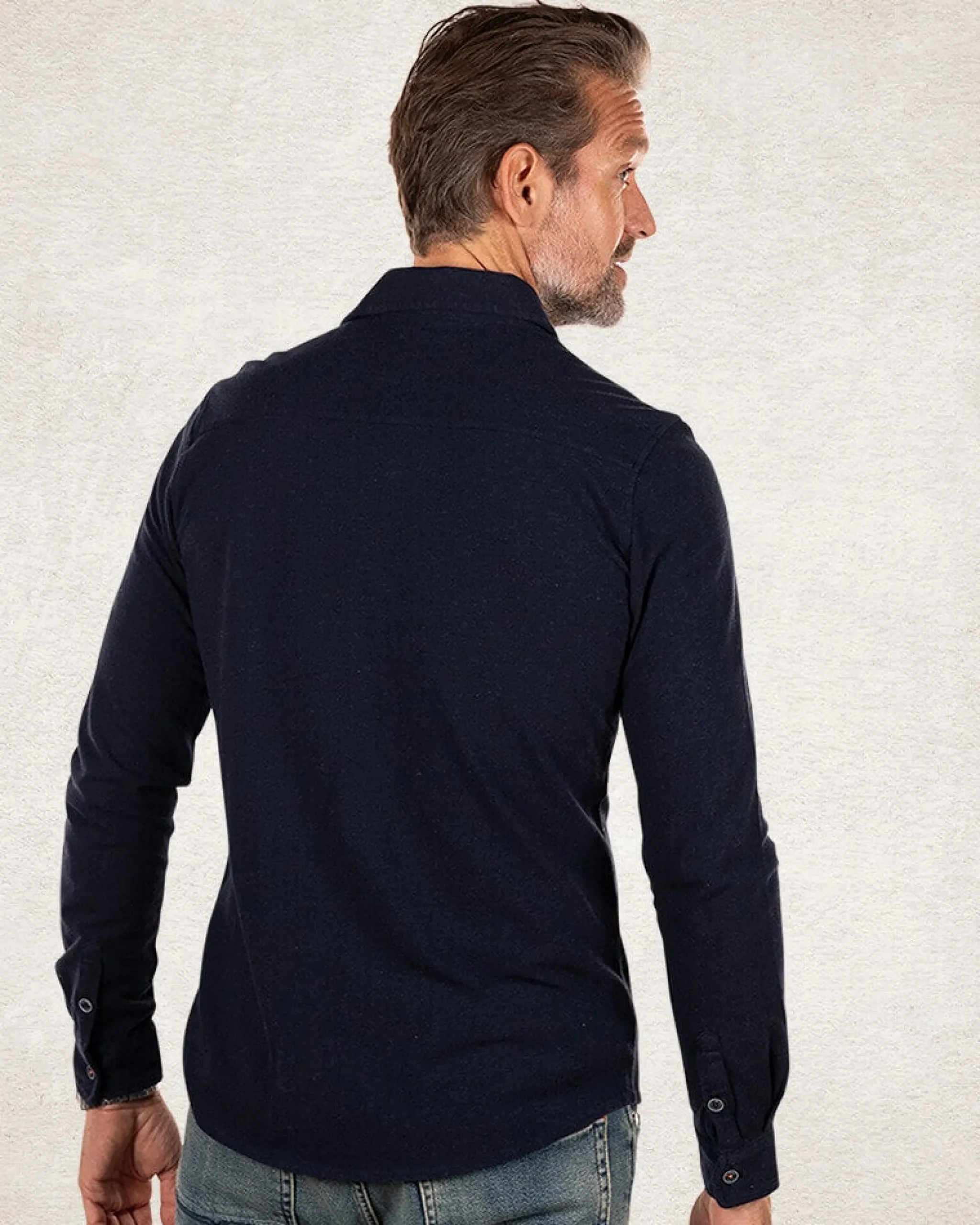 Donkerblauw katoenen overhemd met lange mouw – Pitch Navy