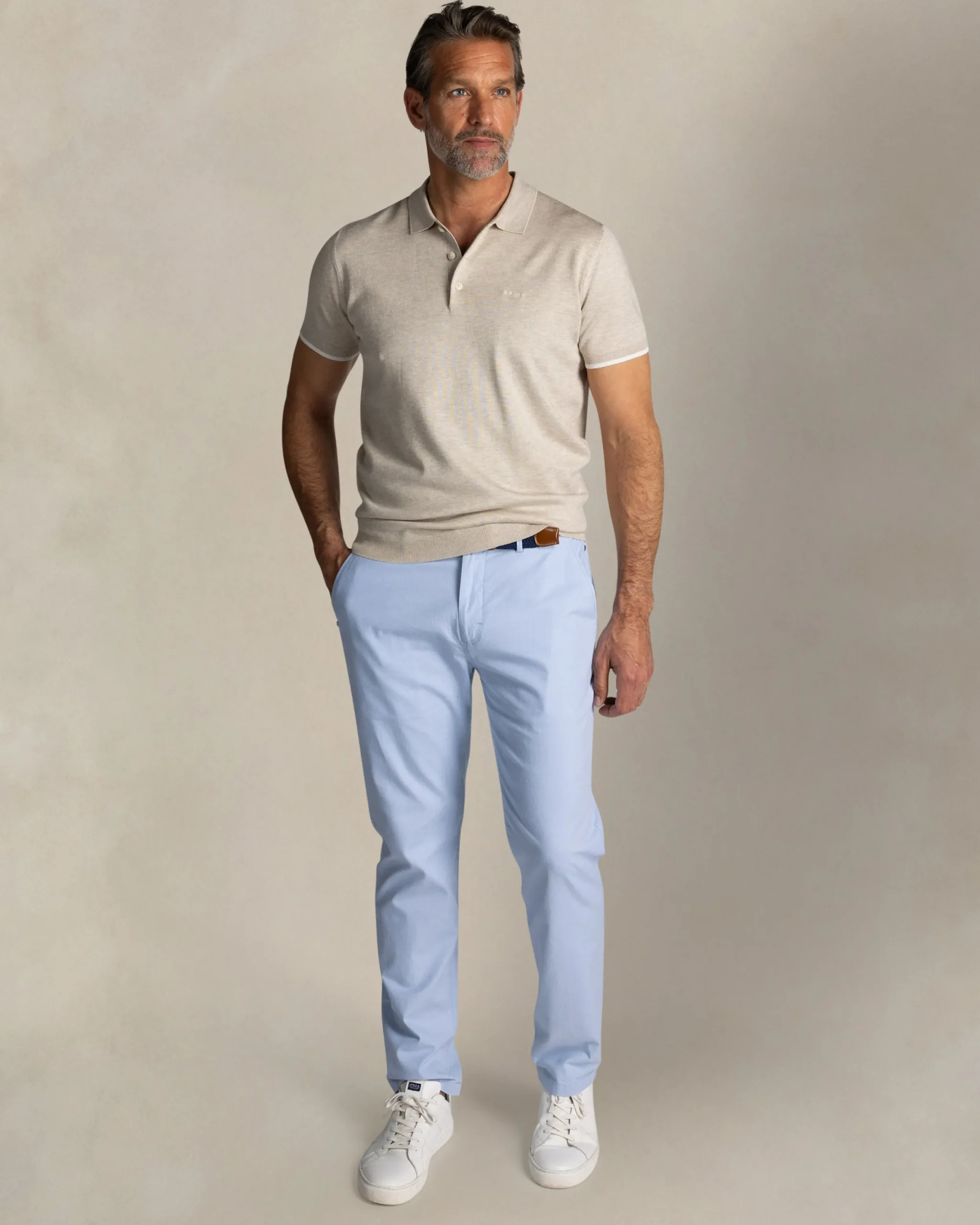 Met een klassiek polodesign is dit shirt voorzien van een gestructureerde kraag en een verfijnde sluiting met drie knopen die een vleugje elegantie toevoegt. De viscose stof zorgt voor een zachte, comfortabele pasvorm, perfect om de hele dag te dragen. Combineer het moeiteloos met een net chino of je favoriete denim voor een look die zowel verzorgd als ontspannen is.
