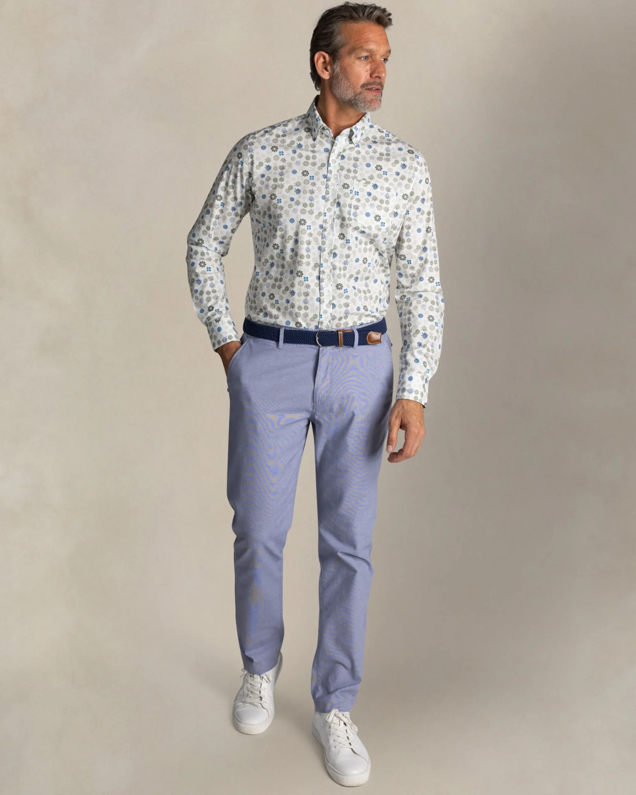 Gemaakt van 100% katoen biedt dit hemd bij elk draagmoment comfort. De klassieke kraag en knoopsluiting stralen tijdloosheid uit, terwijl subtiele blauwe en grijze accenten zorgen voor een moderne touch. Perfect te combineren met nette chino’s of donkere jeans – dit veelzijdige stuk past moeiteloos bij zowel ontspannen brunches als avondwandelingen.