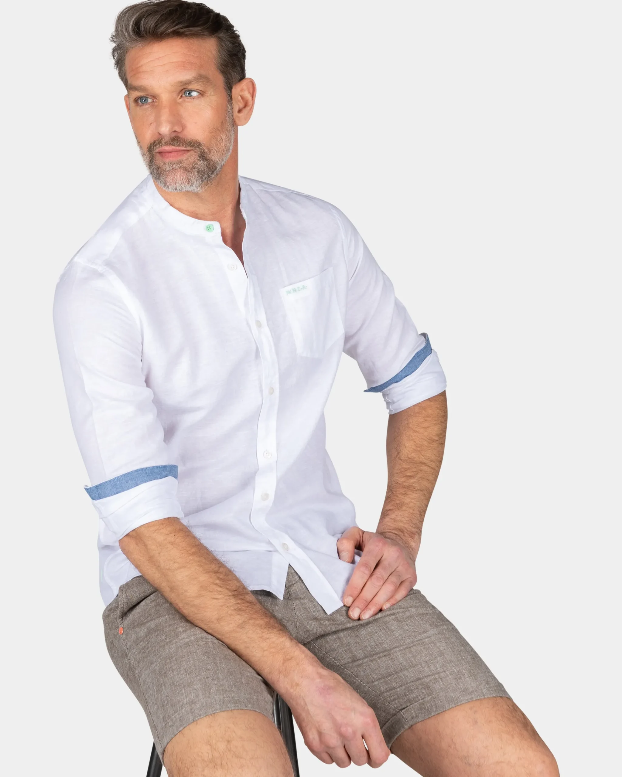 Effen overhemd zonder kraag – White