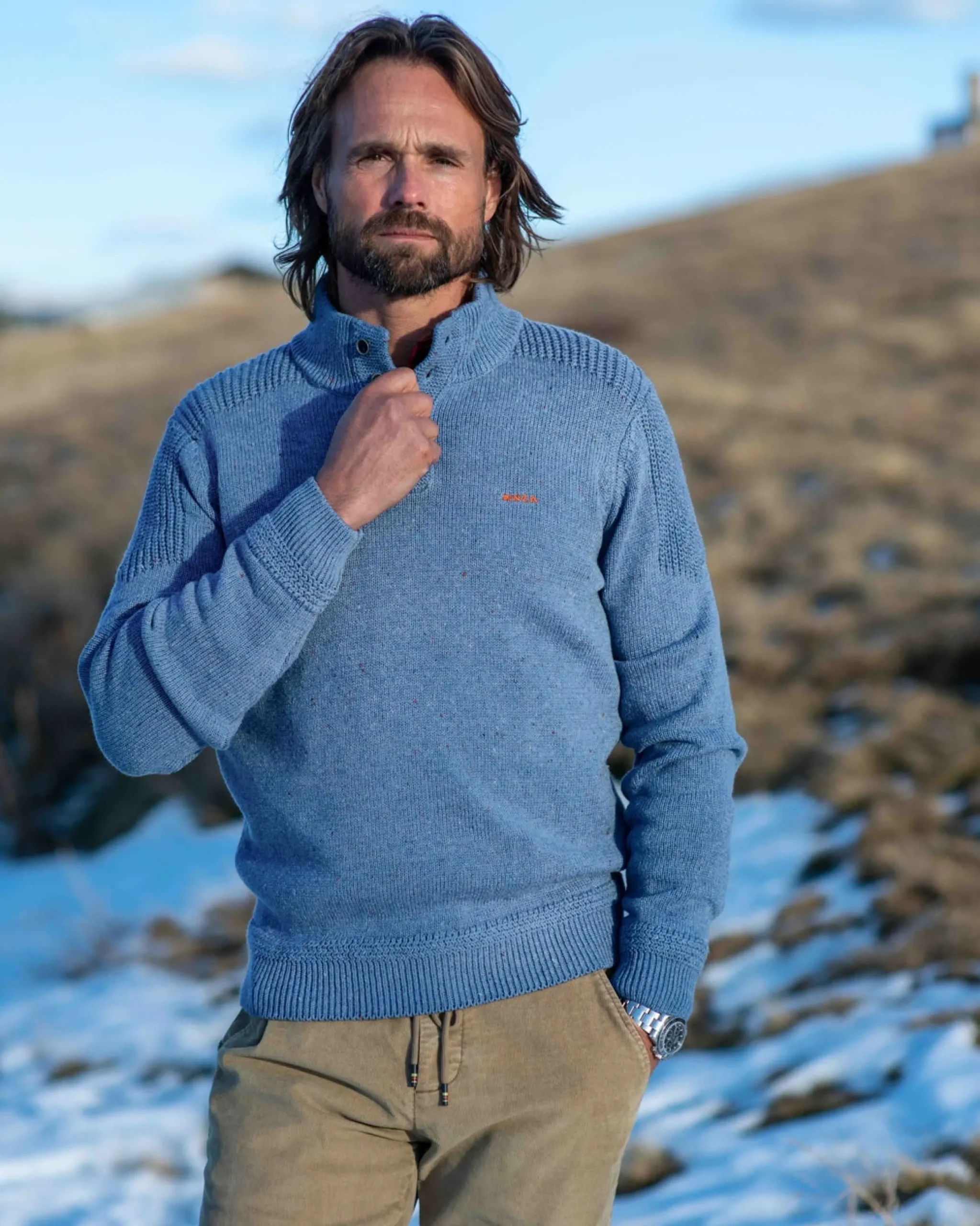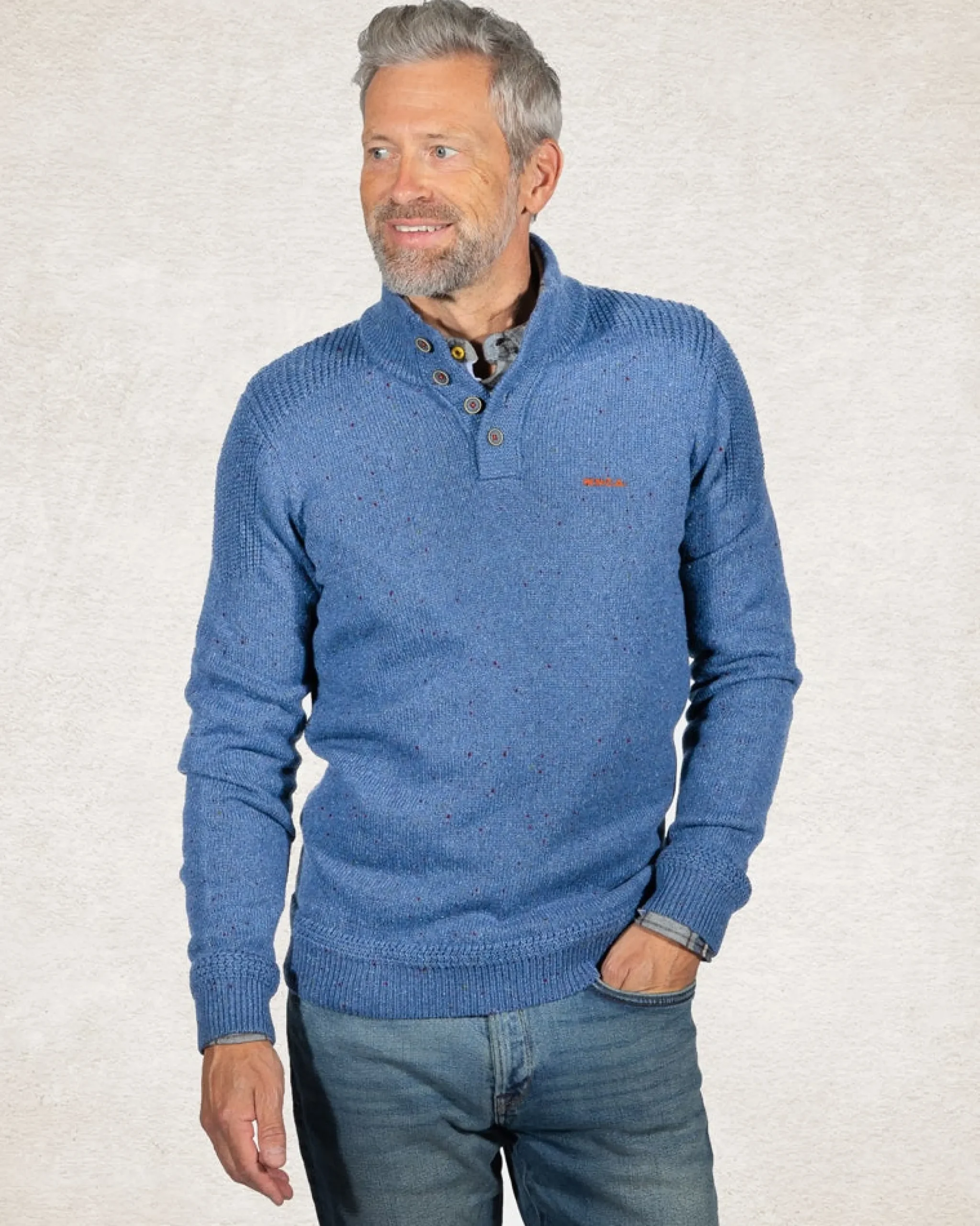 Effen trui met halve knoopssluiting – Cloudy Blue