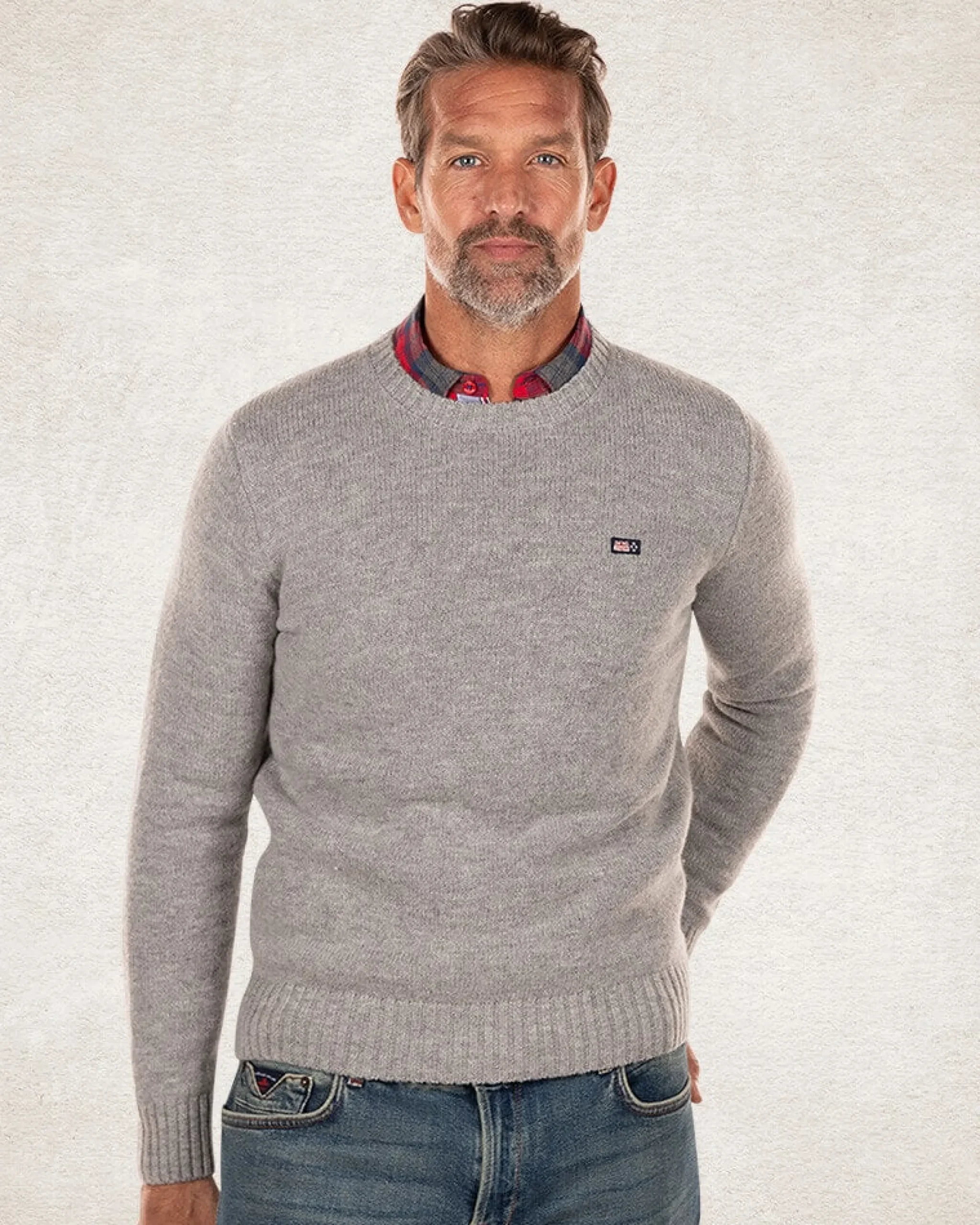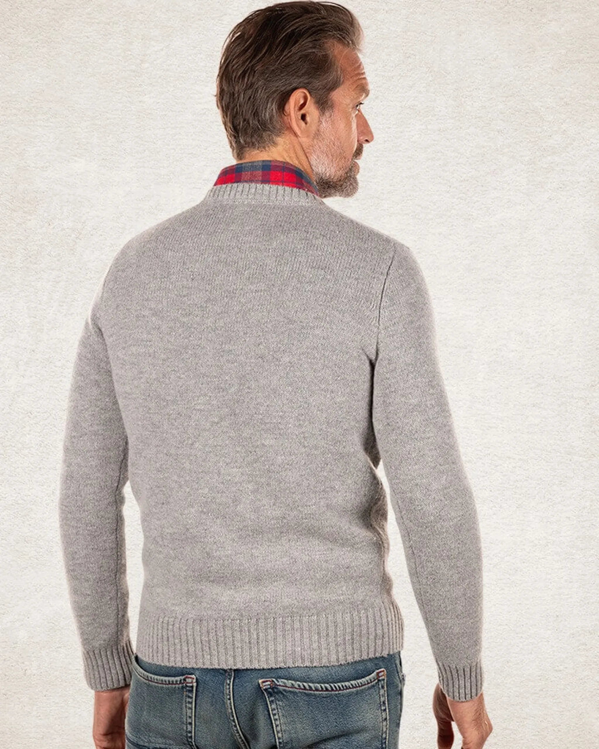 Effen trui met ronde hals van wol – Grey Melange