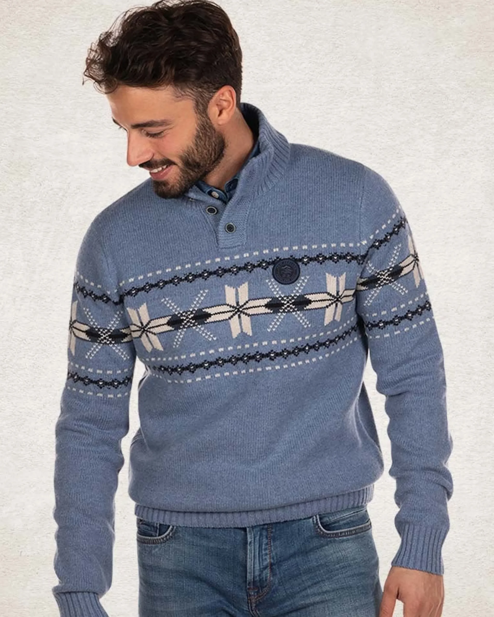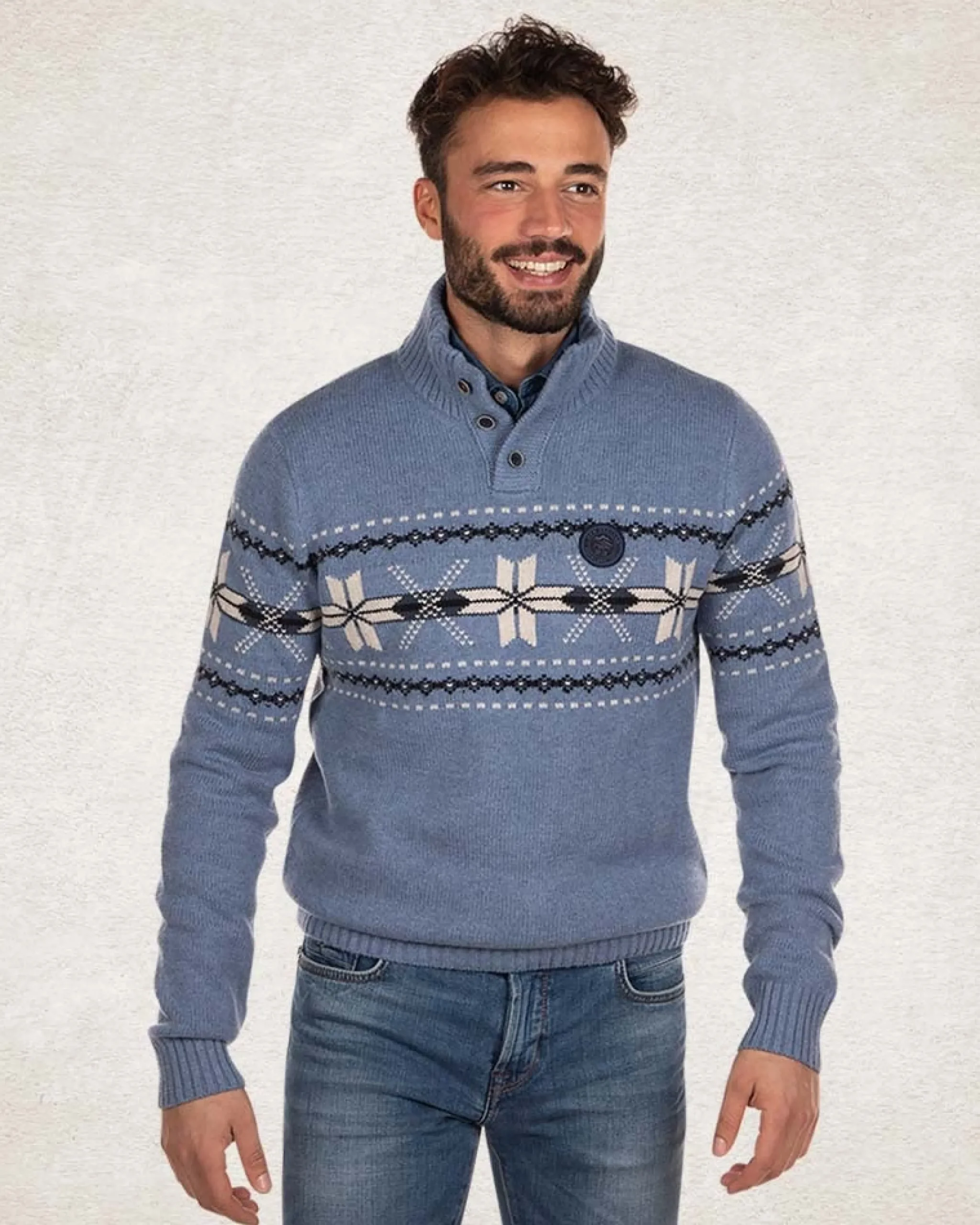 Gebreide trui met halve knoopssluiting – Cloudy Blue