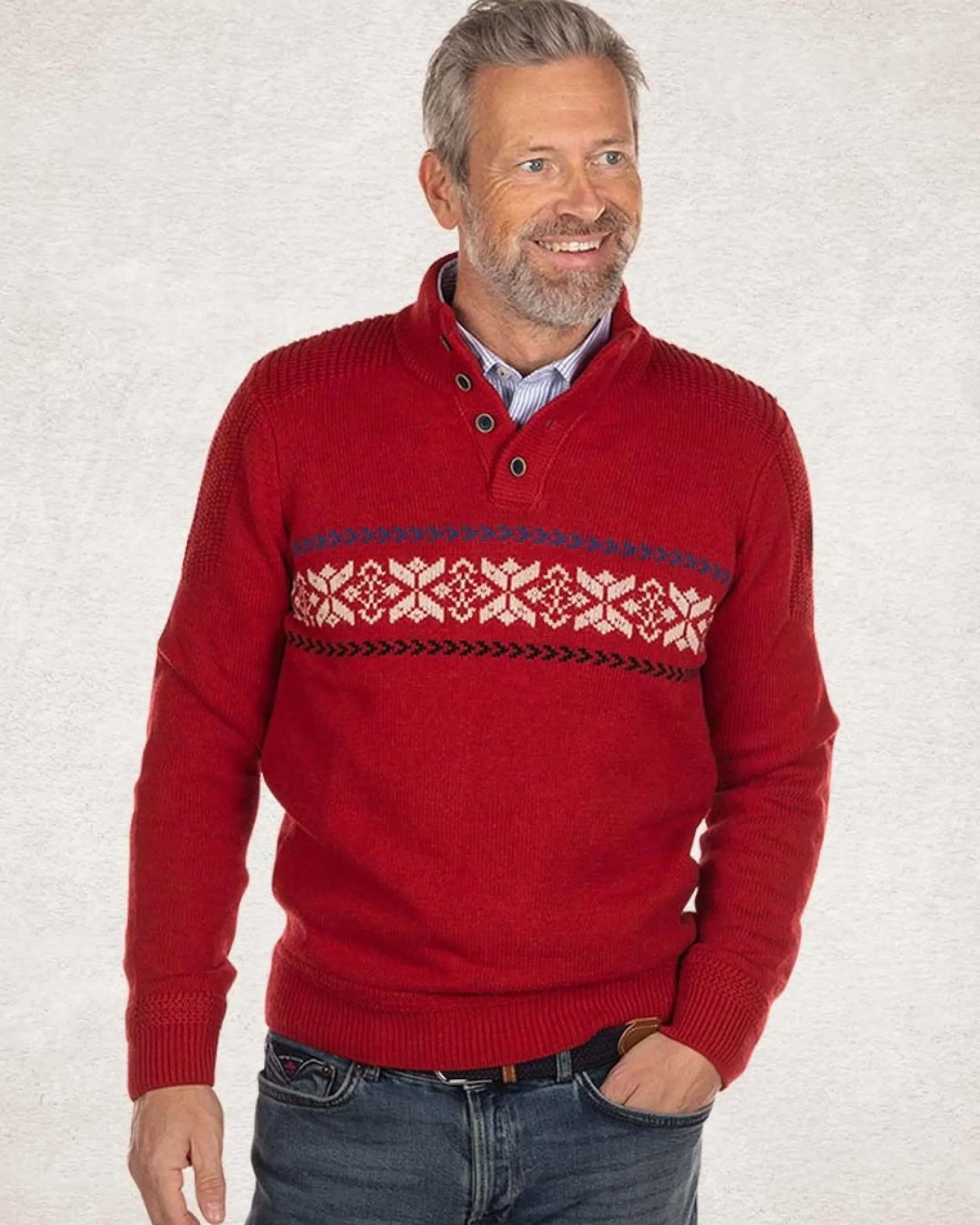 Gebreide trui met halve knoopssluiting – Carmine Red