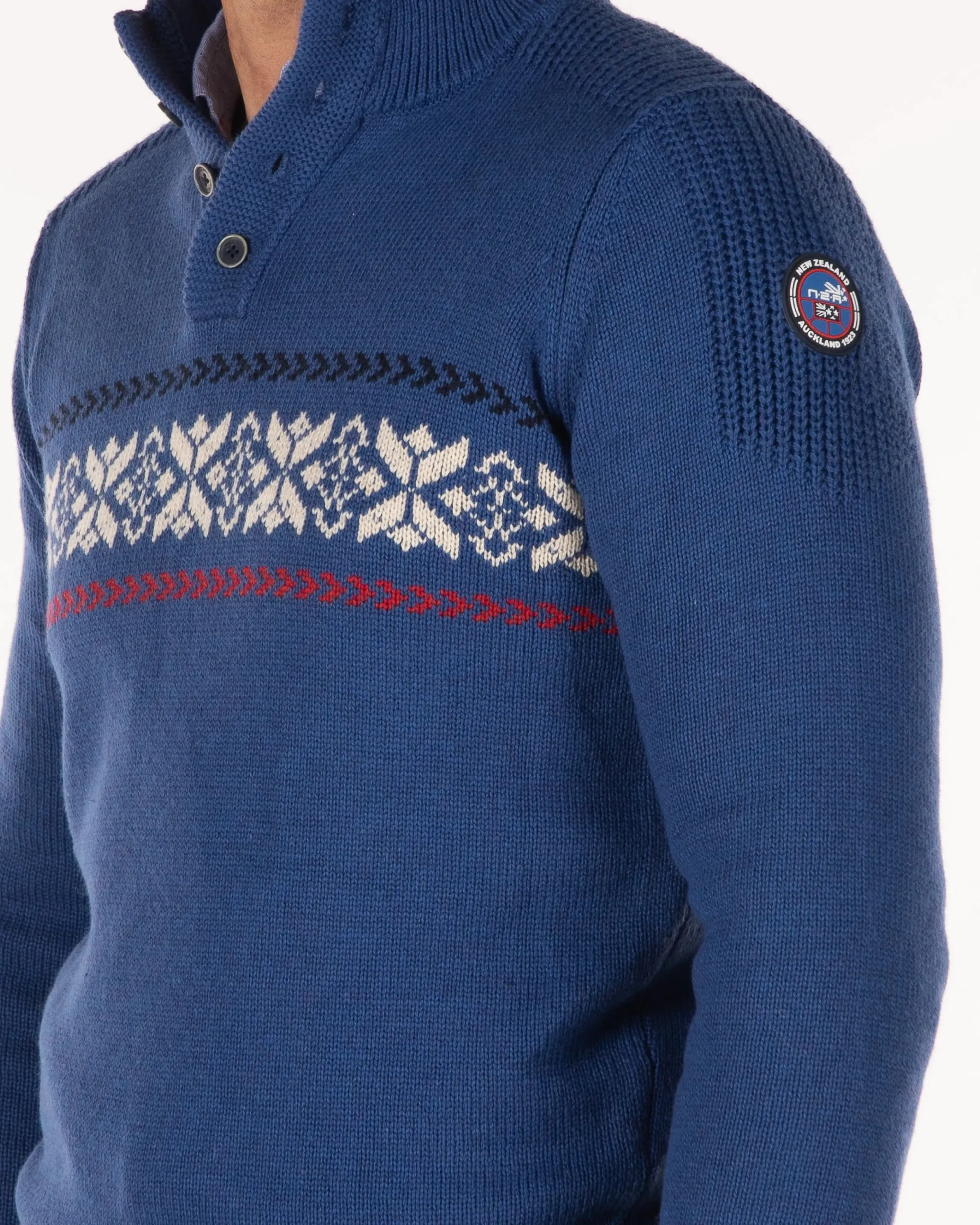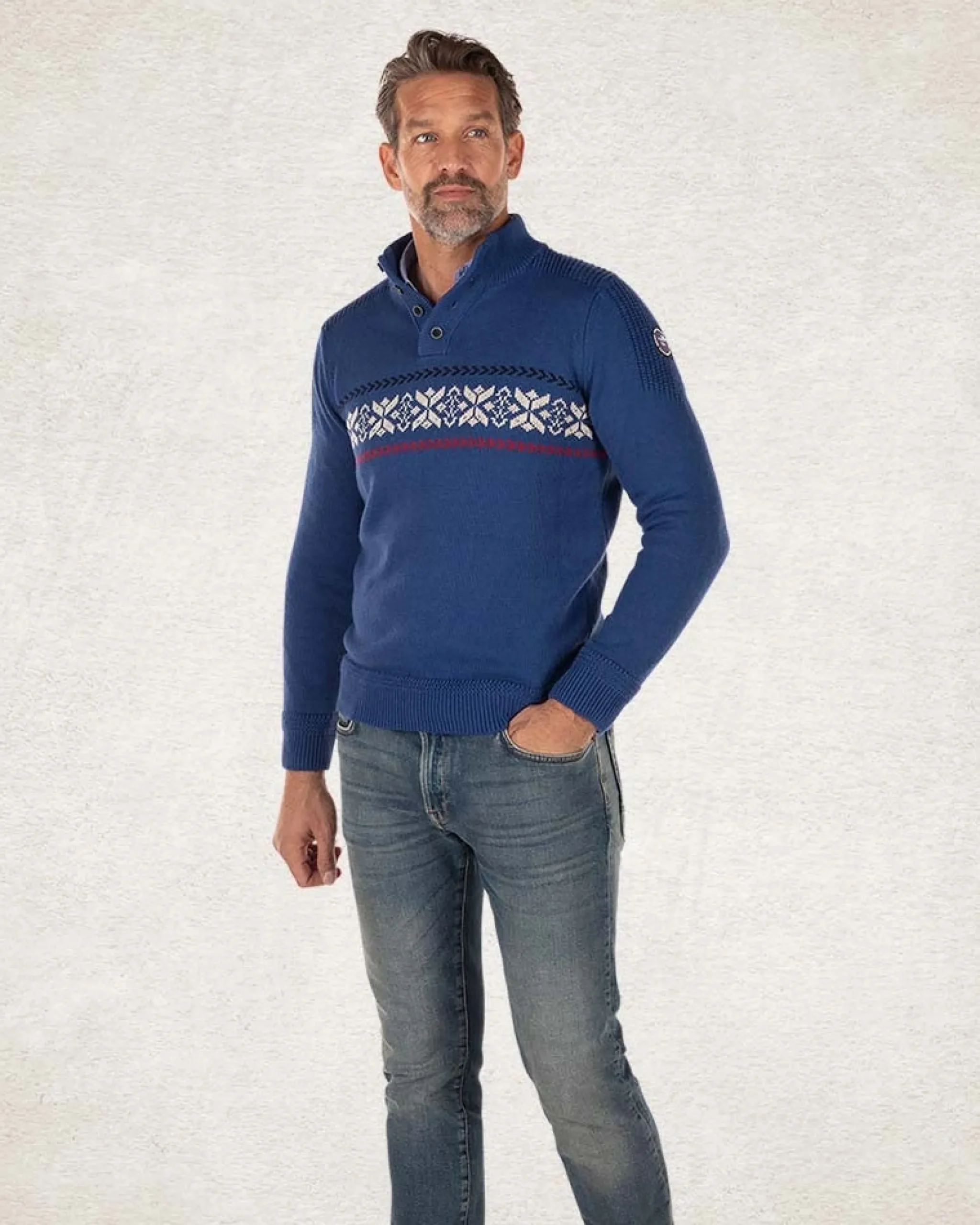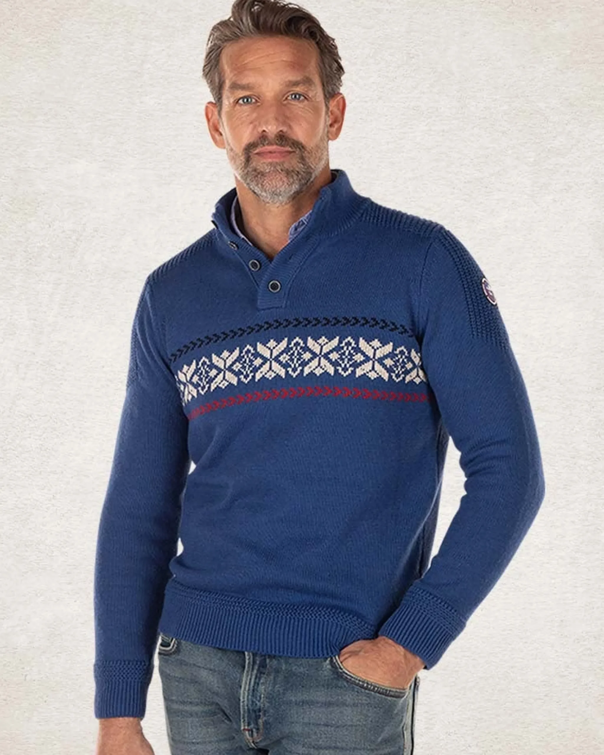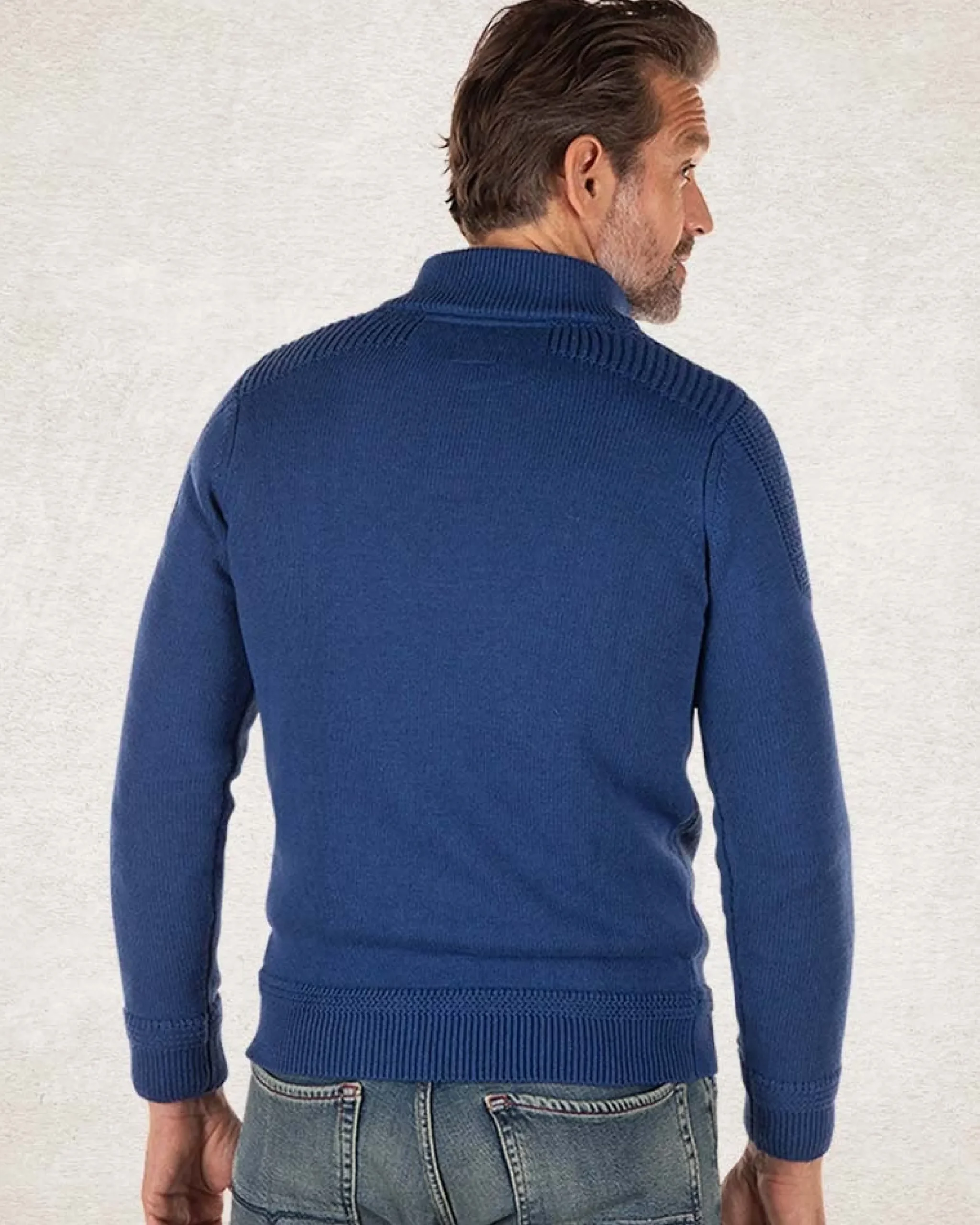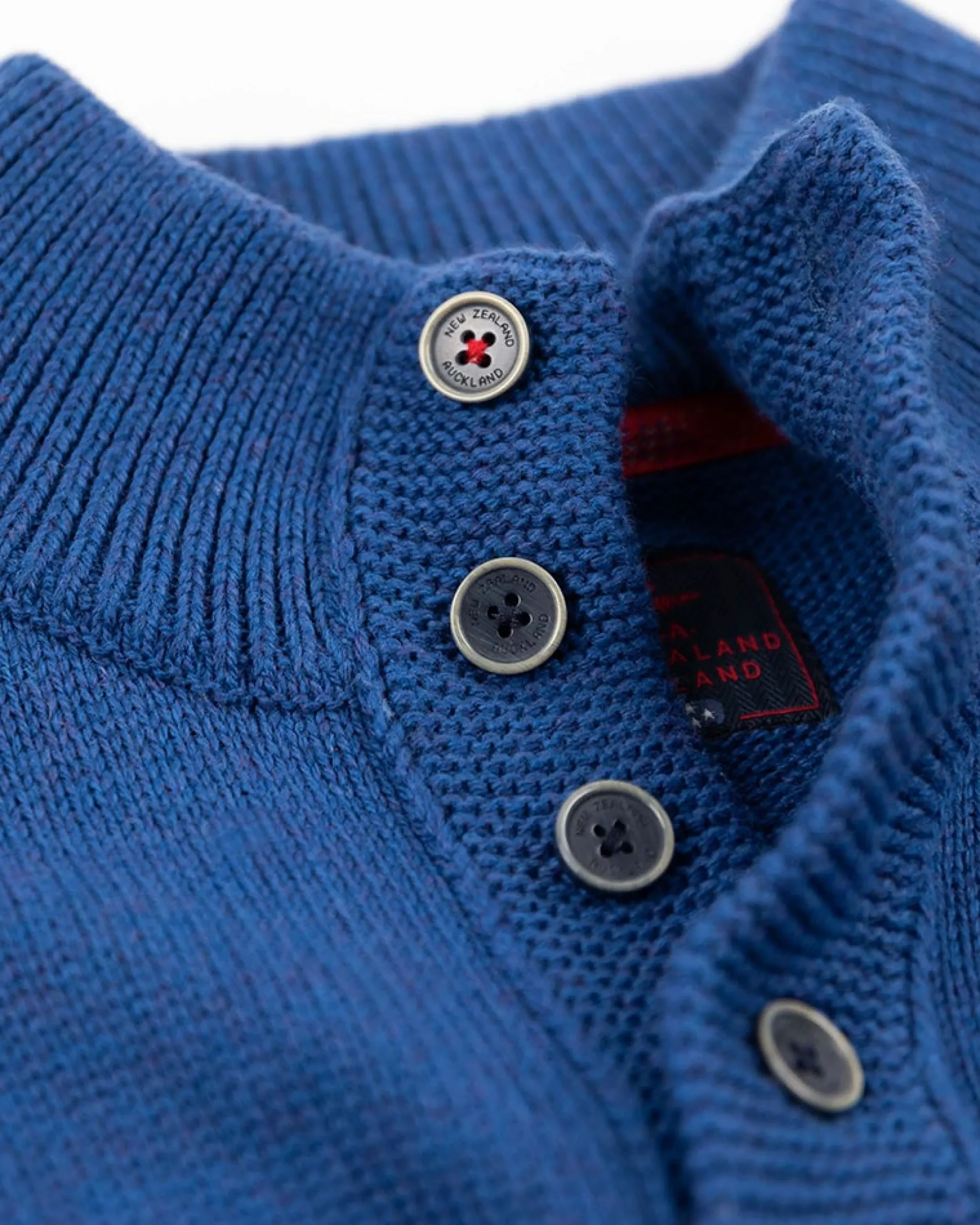 Gebreide trui met halve knoopssluiting – Bright Water Blue