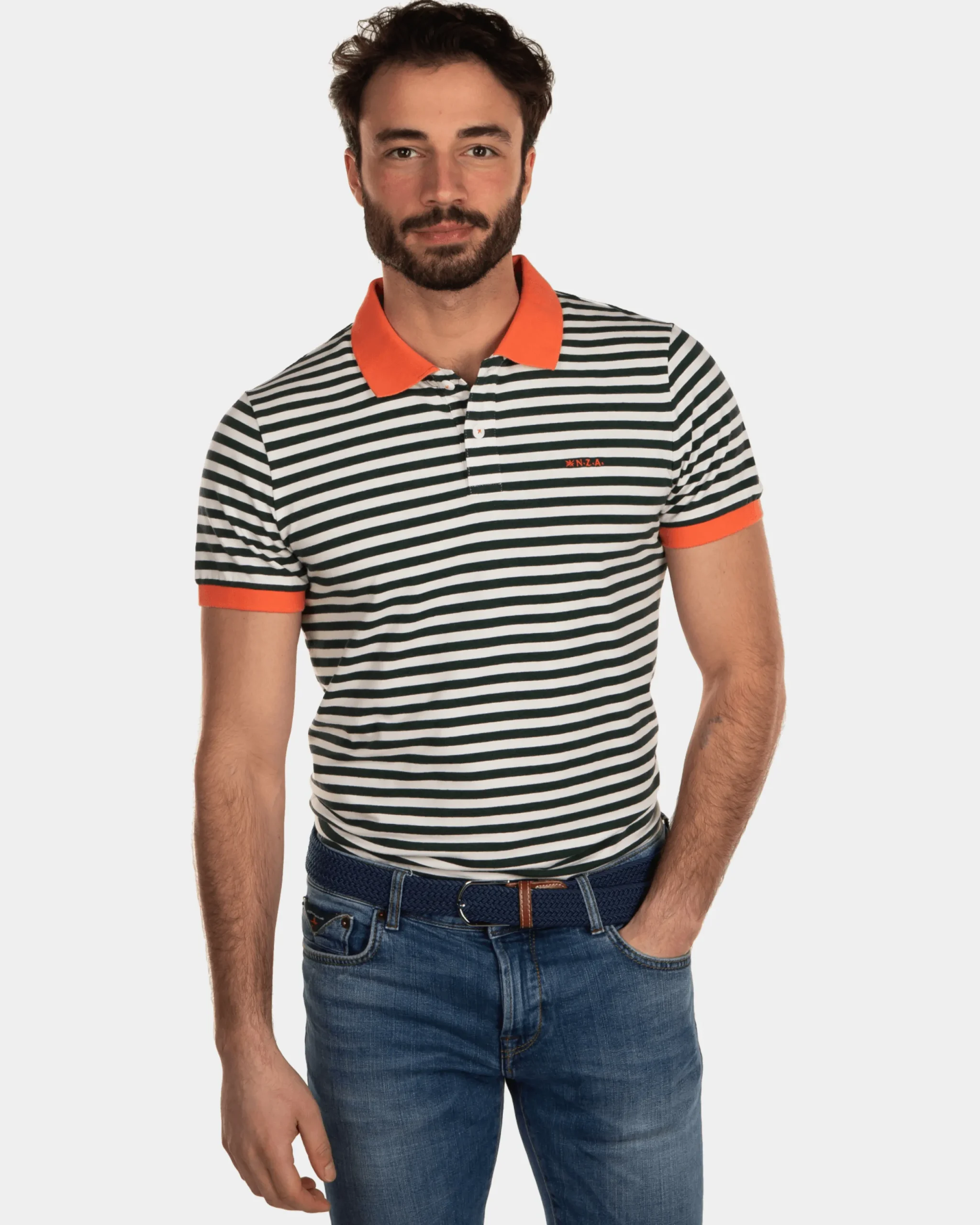 Gestreepte katoenen polo – Dark Pine