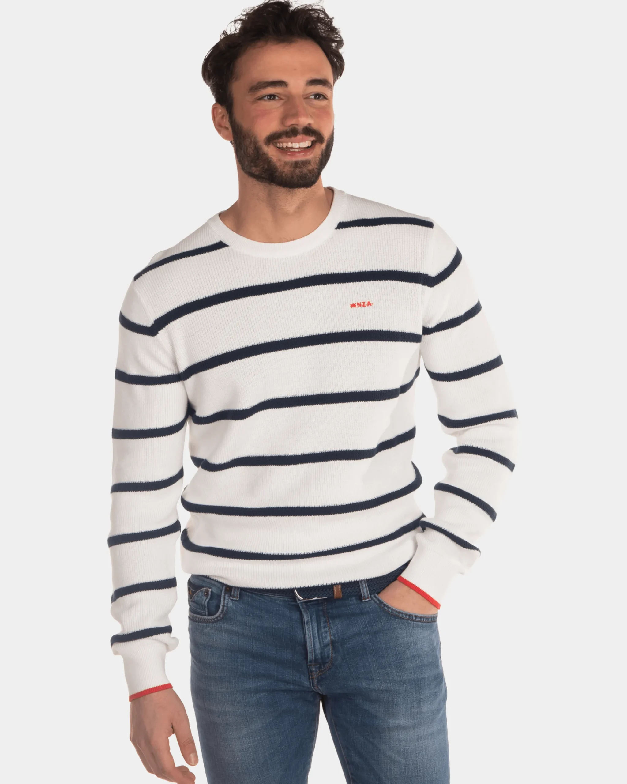Gestreepte trui met ronde hals ecru zwart – Dusty Ecru