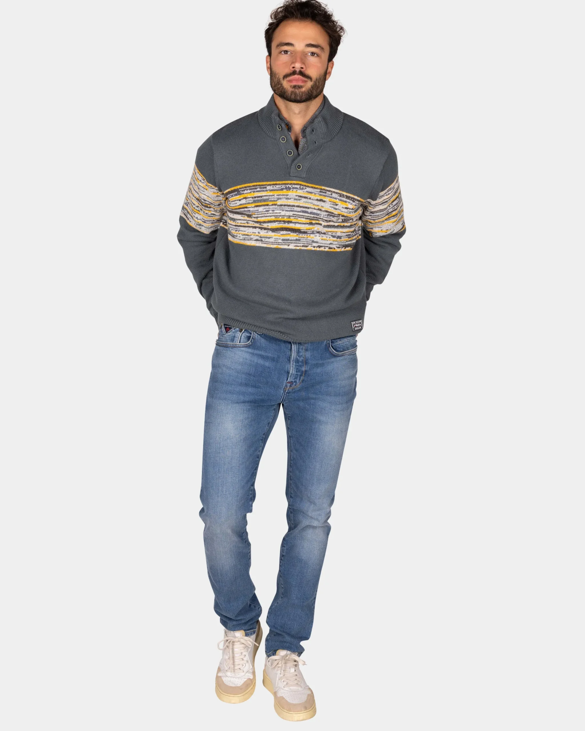 Grijze katoenen trui met geel zwarte print – Ash Grey