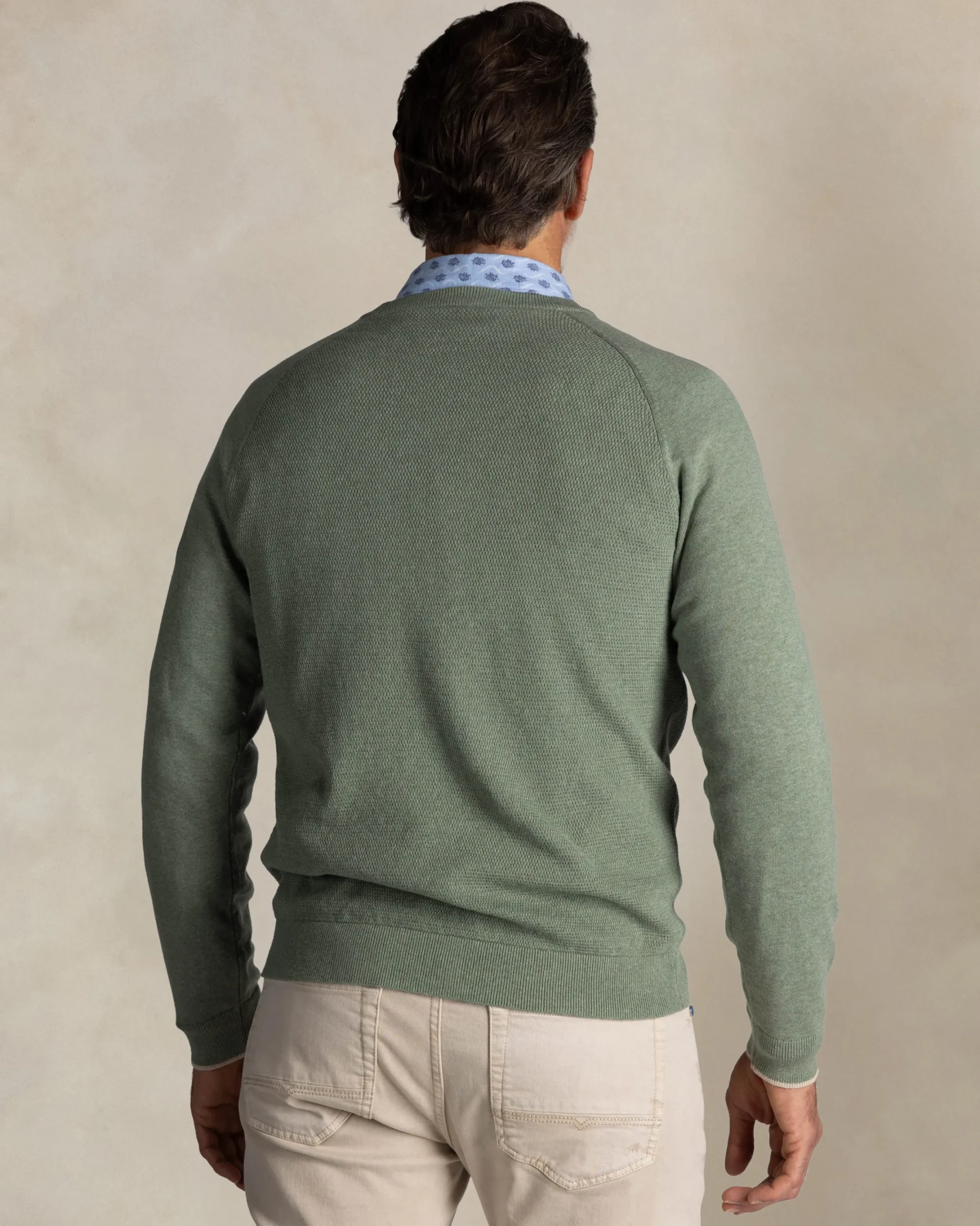 Gemaakt van zacht katoen biedt deze trui een uniek textuurpatroon dat diepte geeft aan het minimalistische ontwerp. De klassieke ronde hals en lange mouwen zorgen voor een tijdloze uitstraling, versterkt door subtiele ribboorden aan de manchetten en zoom. Perfect om in laagjes te dragen: combineer met een nette broek voor een verzorgde look of met een donkere jeans voor een meer ontspannen uitstraling.