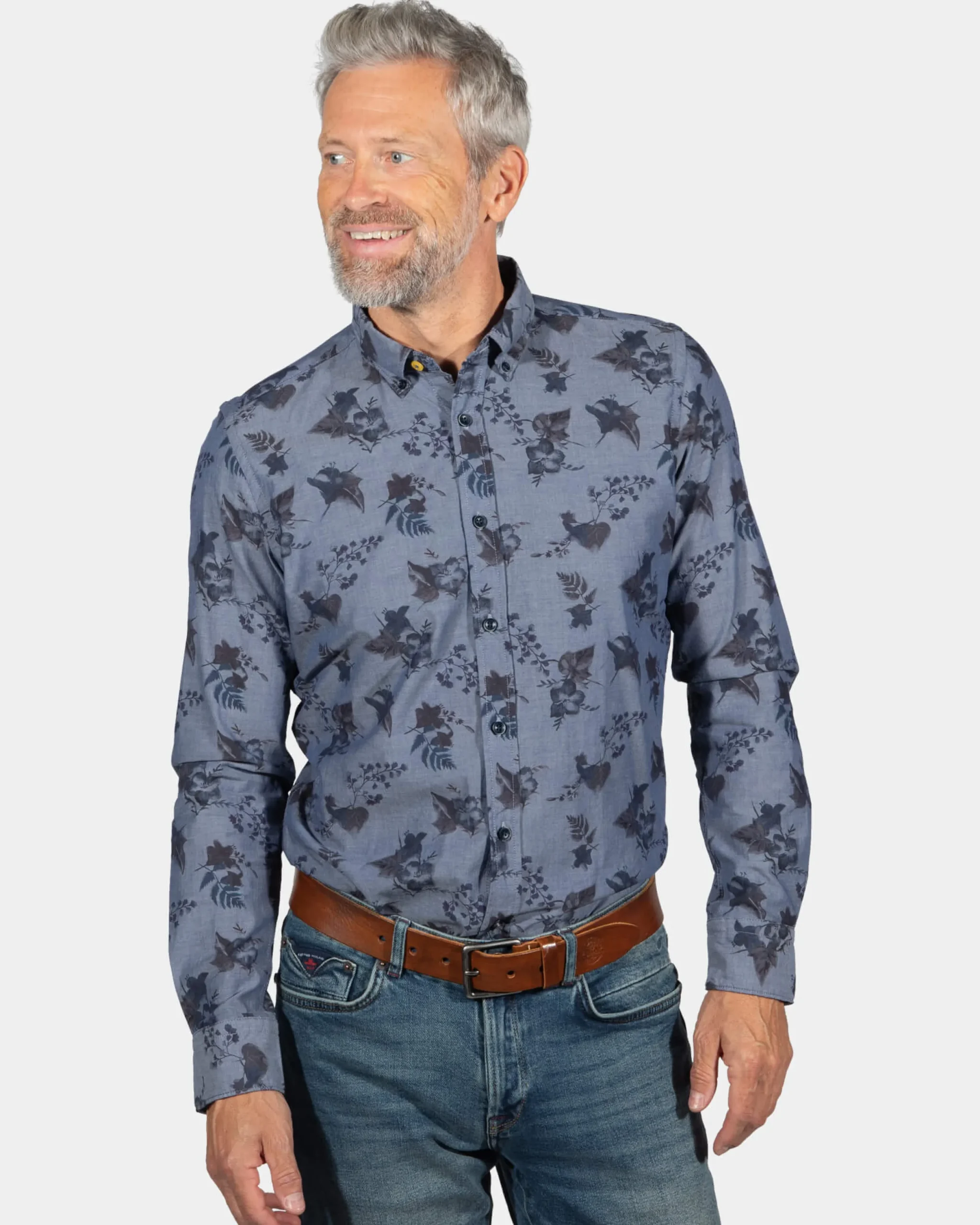 Katoenen overhemd met bloemenprint South Mavora – Storm Blue