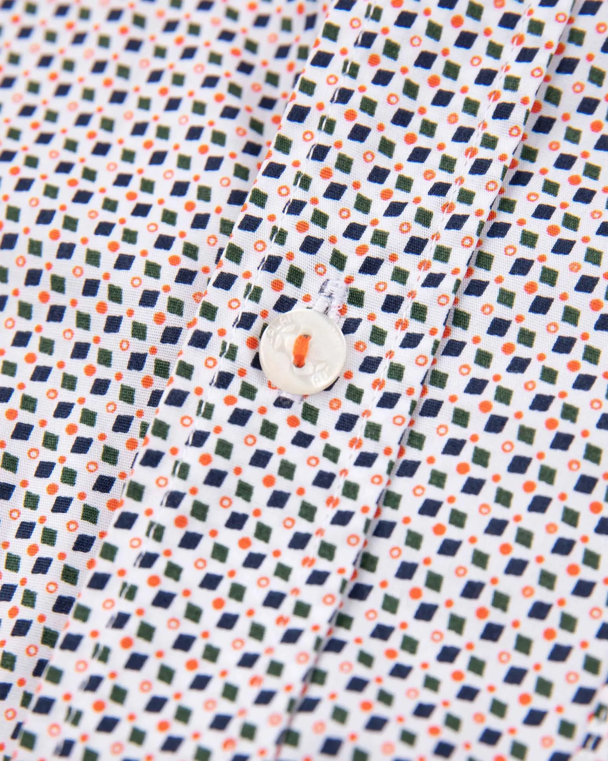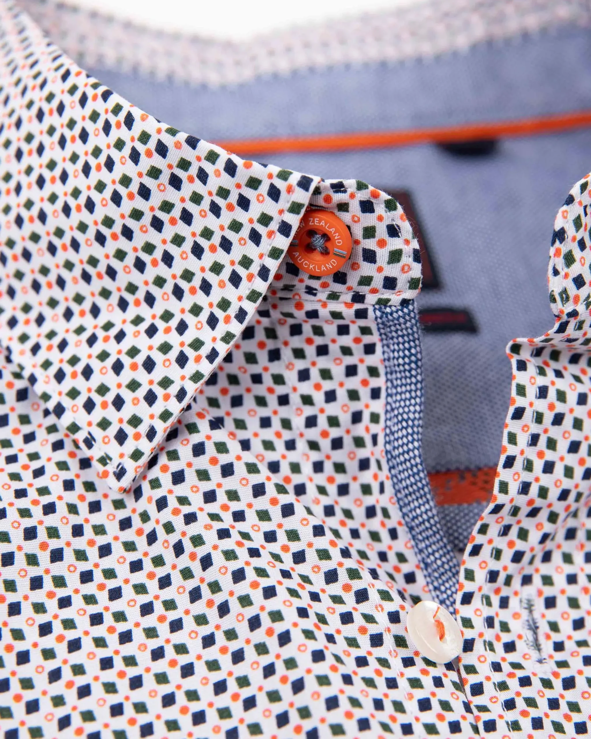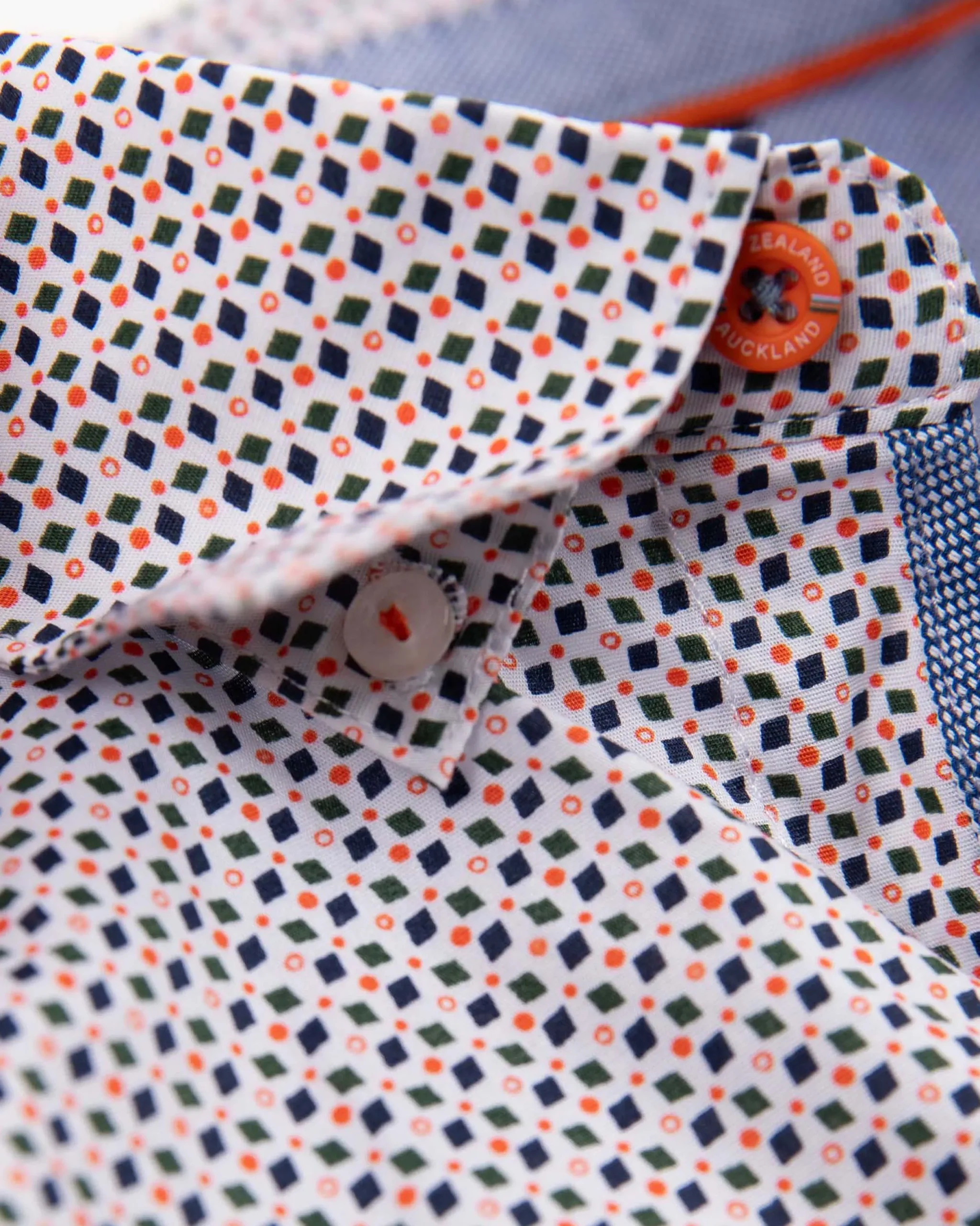 - Accentkleurige tape aan de binnenkant van de halslijn