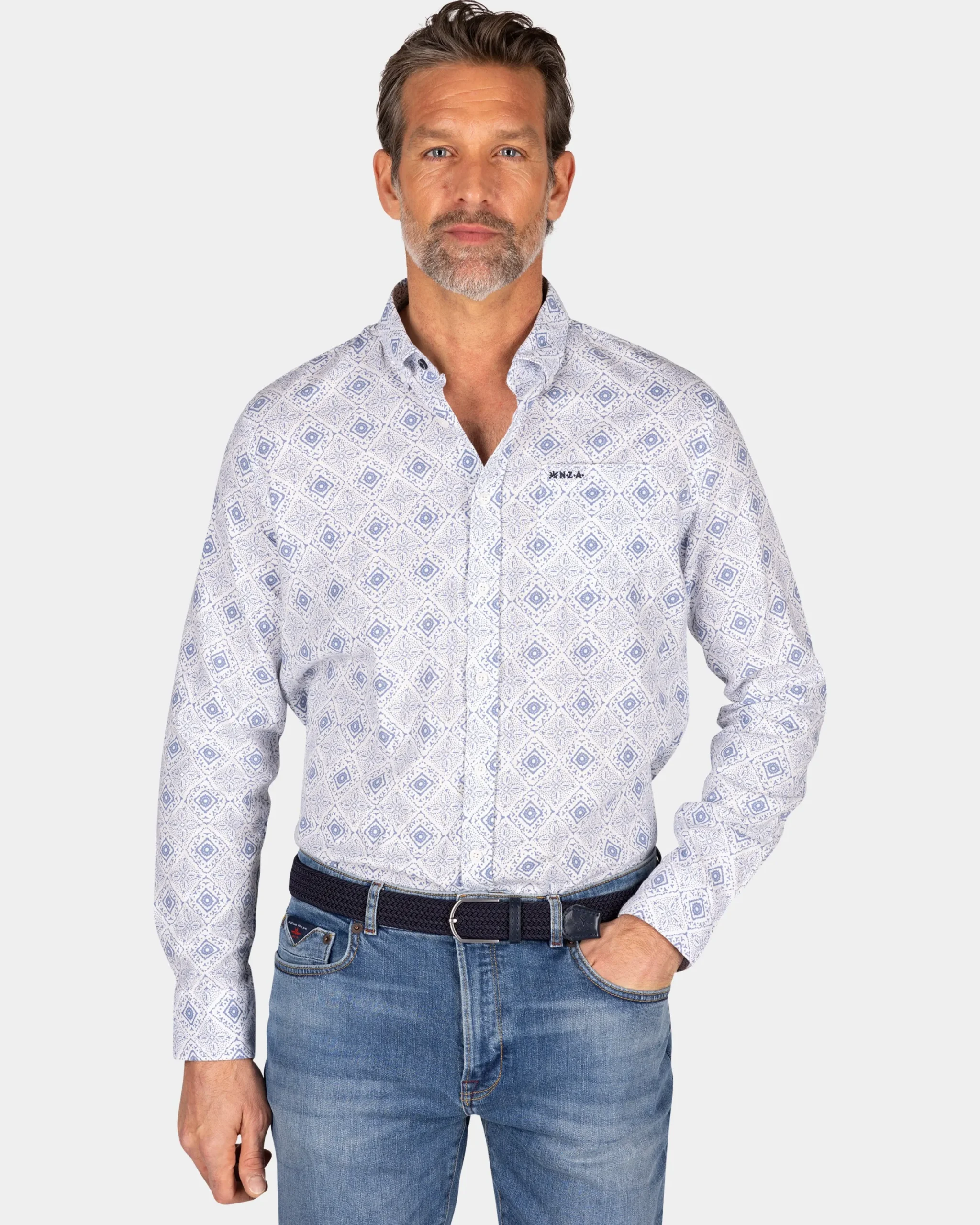 Lichtblauw geprint overhemd van linnen