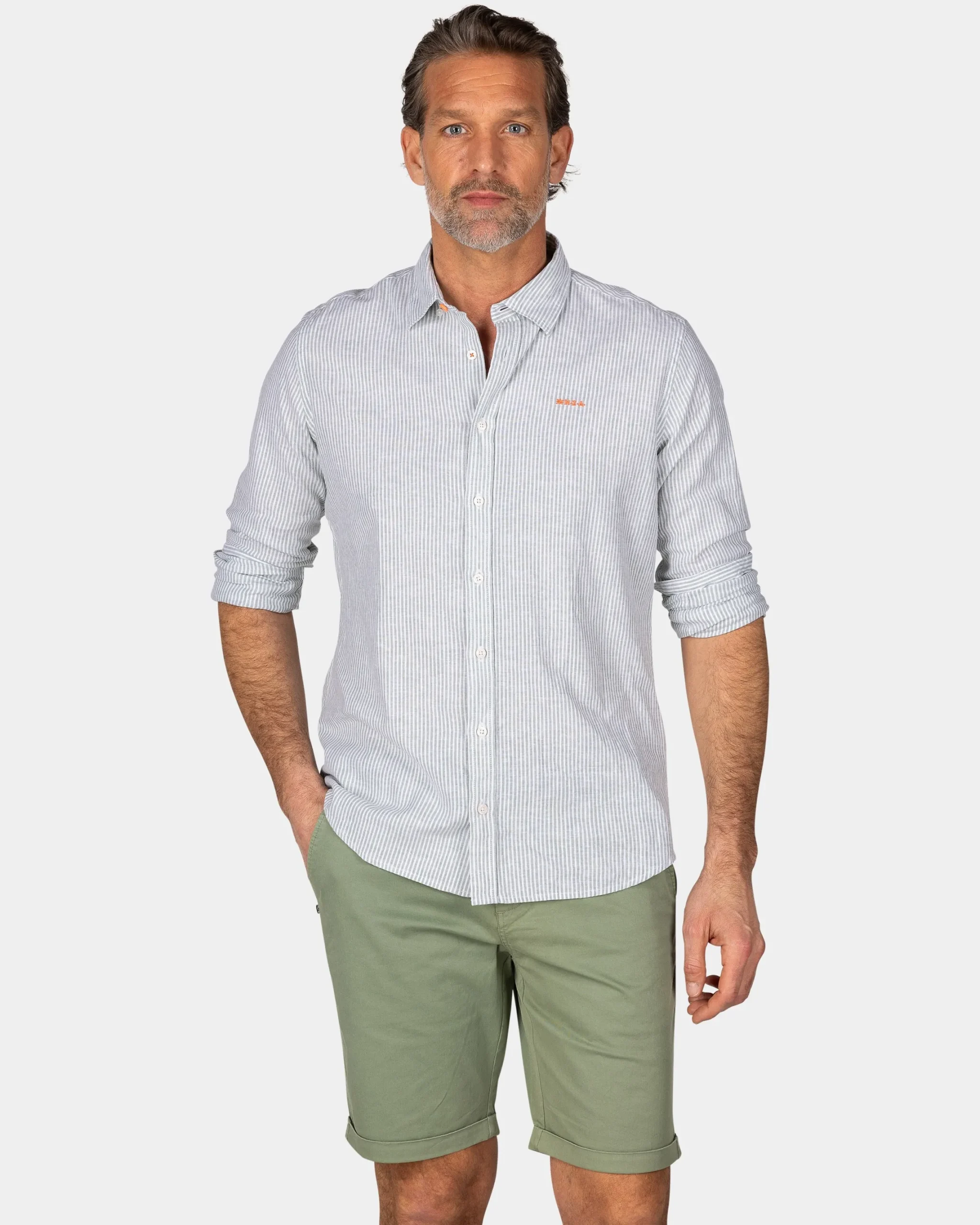 Lichtgroen linnen overhemd met elastaan
