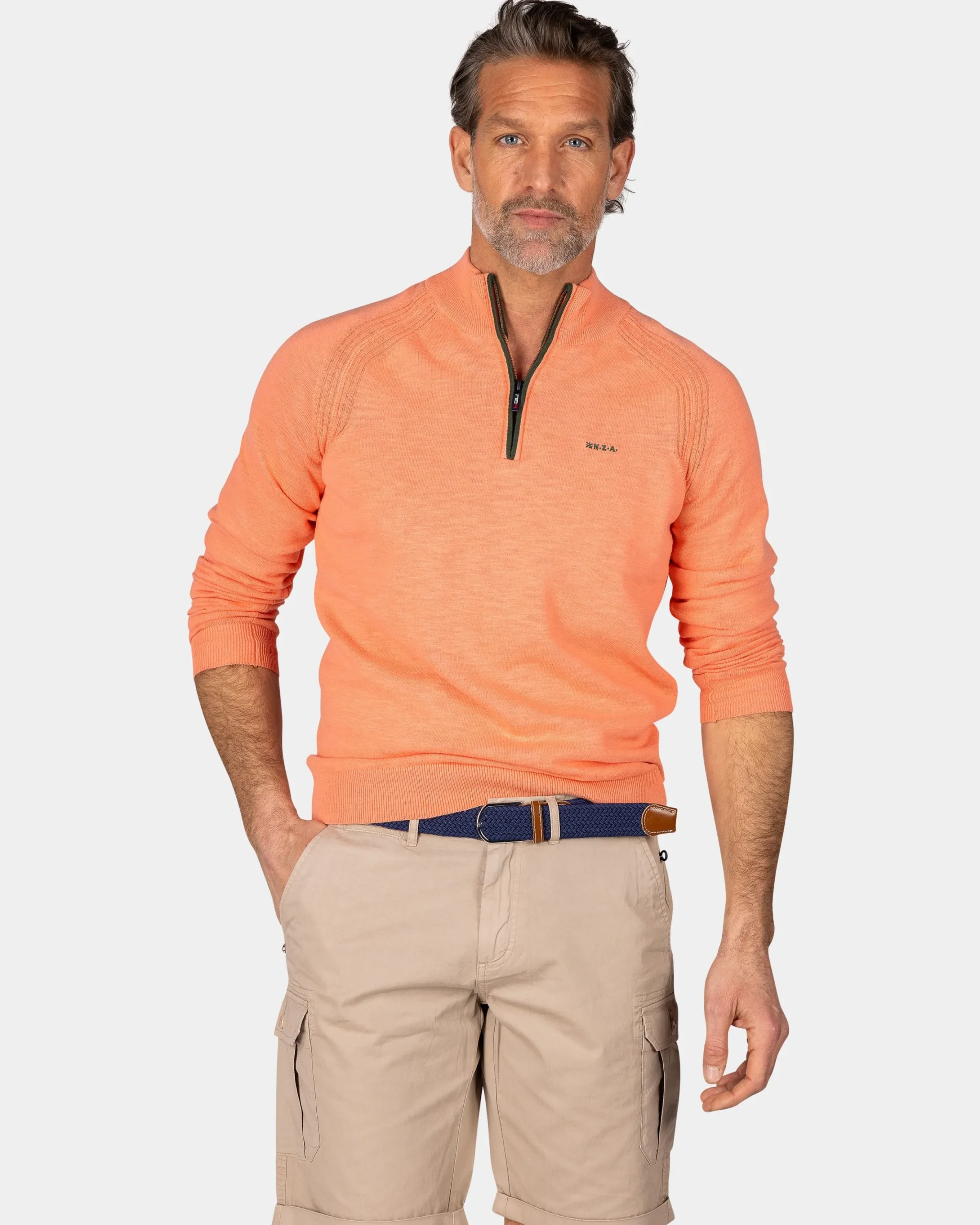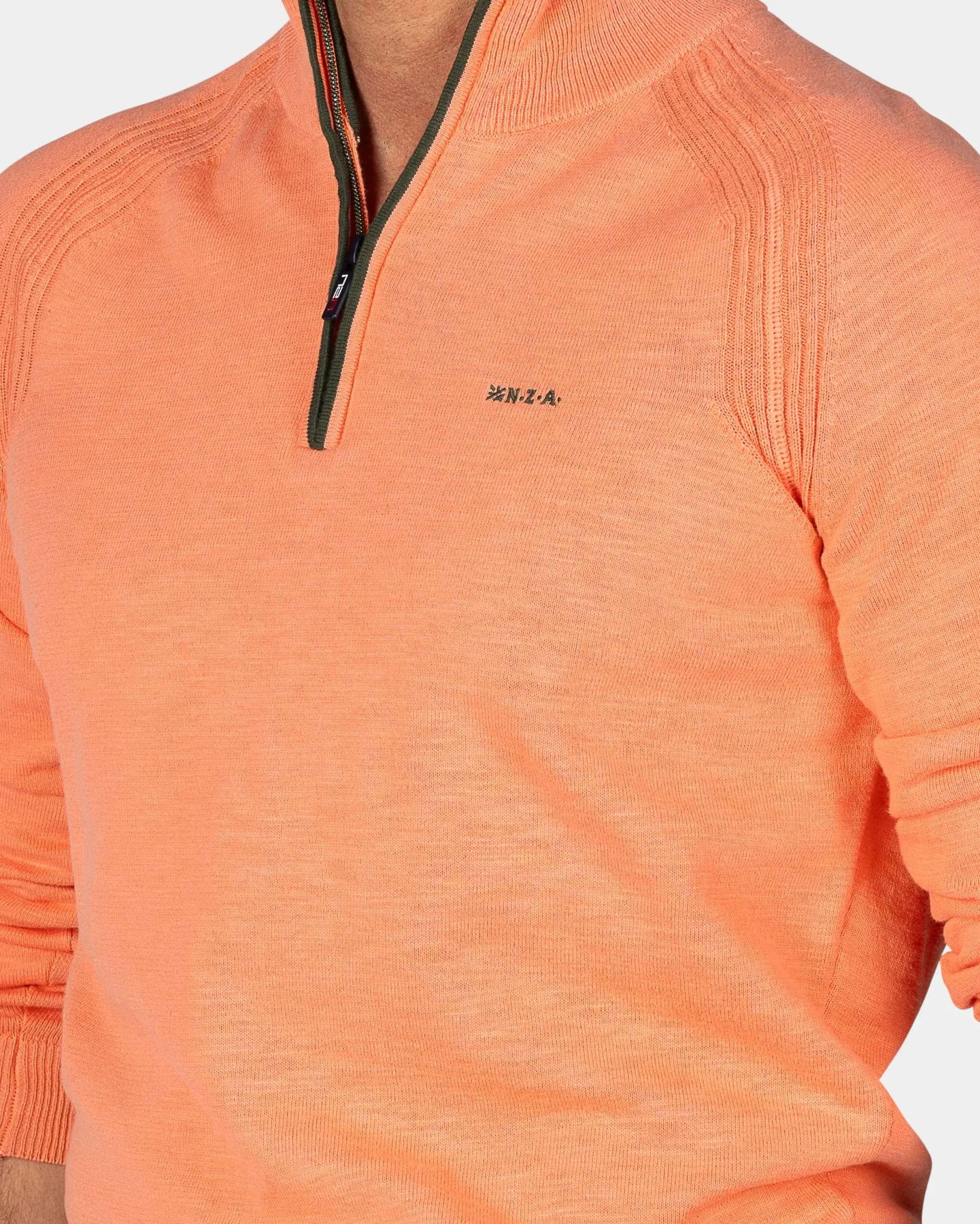 Lichtoranje katoenen trui met halve rits