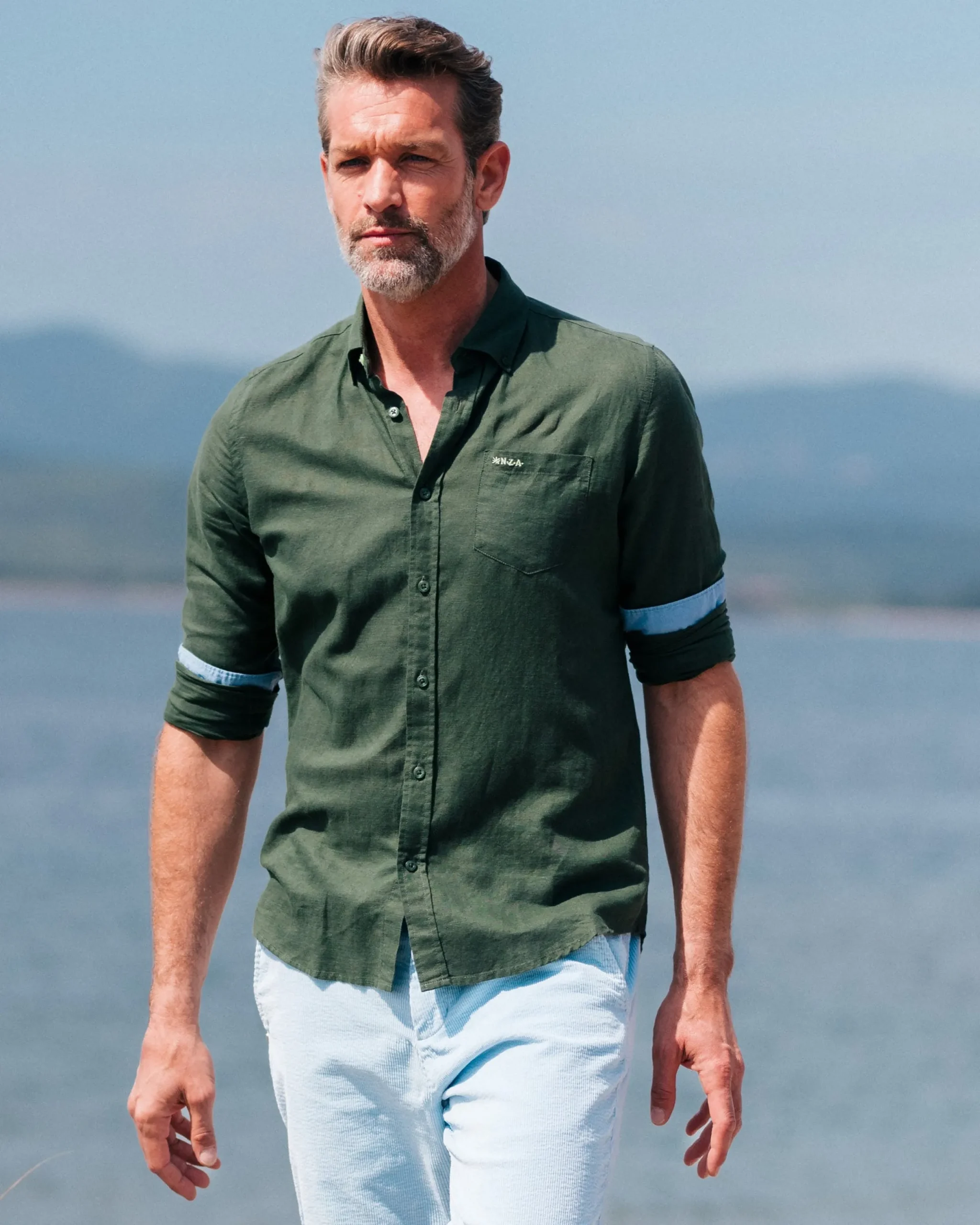 Linnen donkergroen overhemd met lange mouw