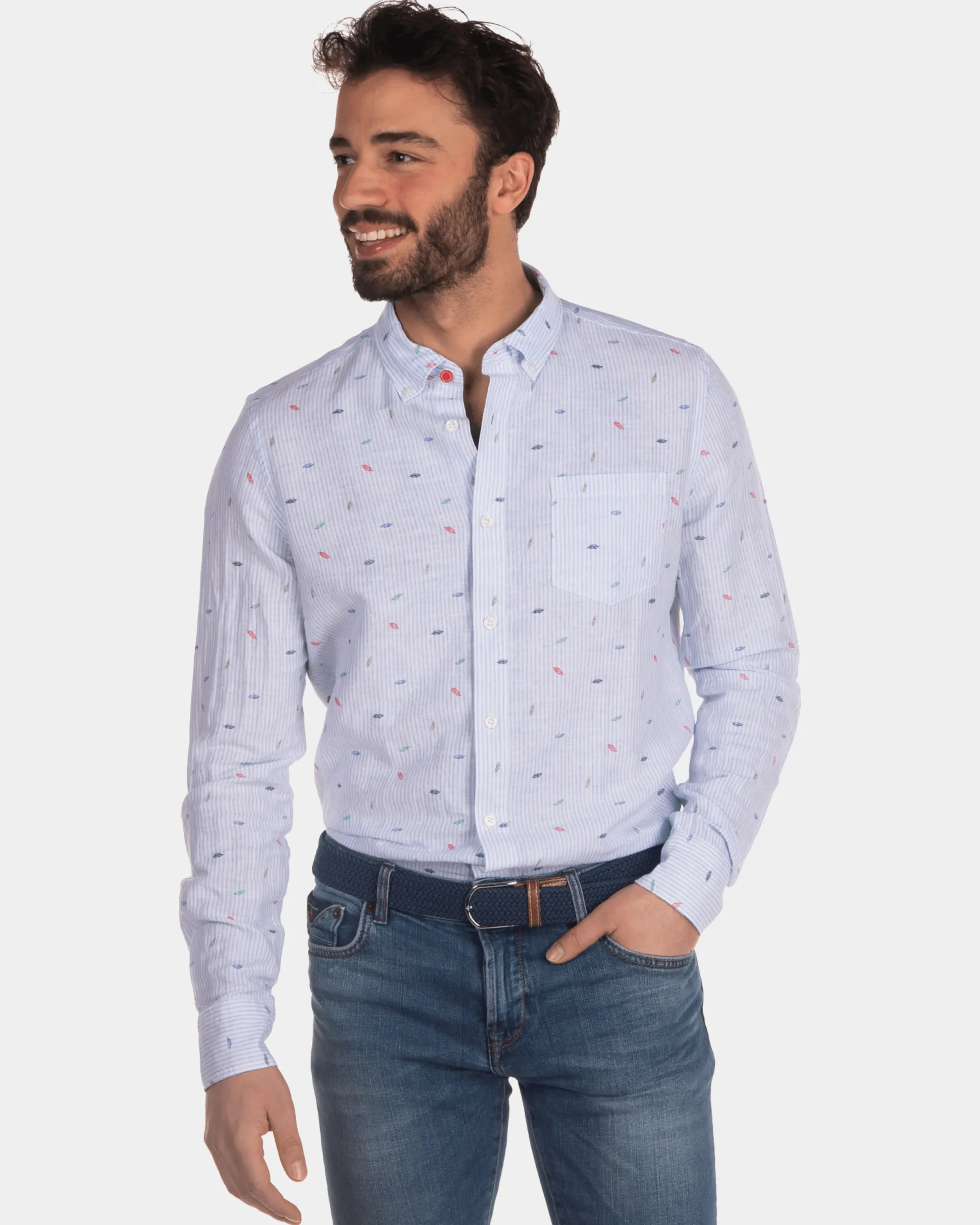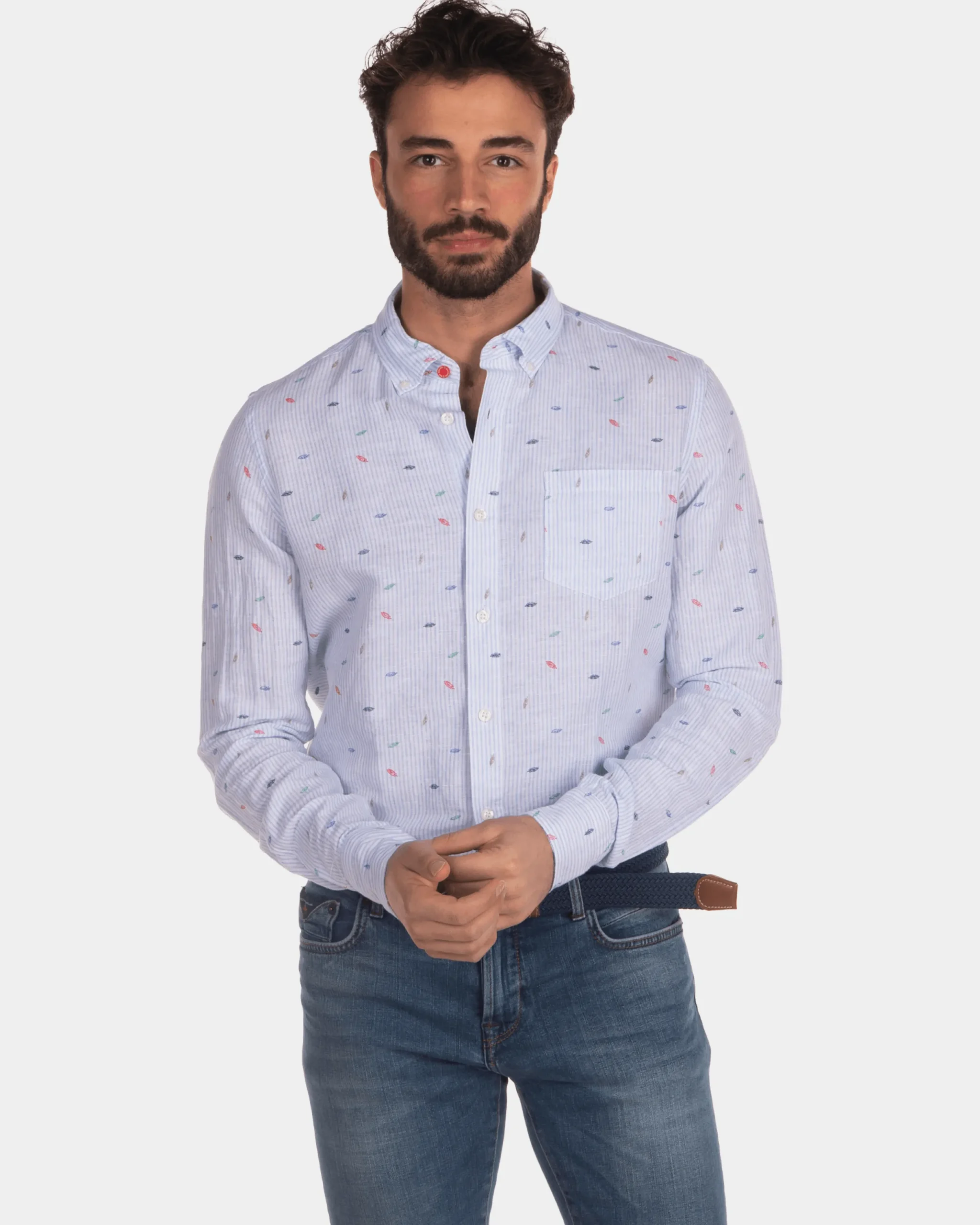 Linnen overhemd met print lichtblauw – Light Blue