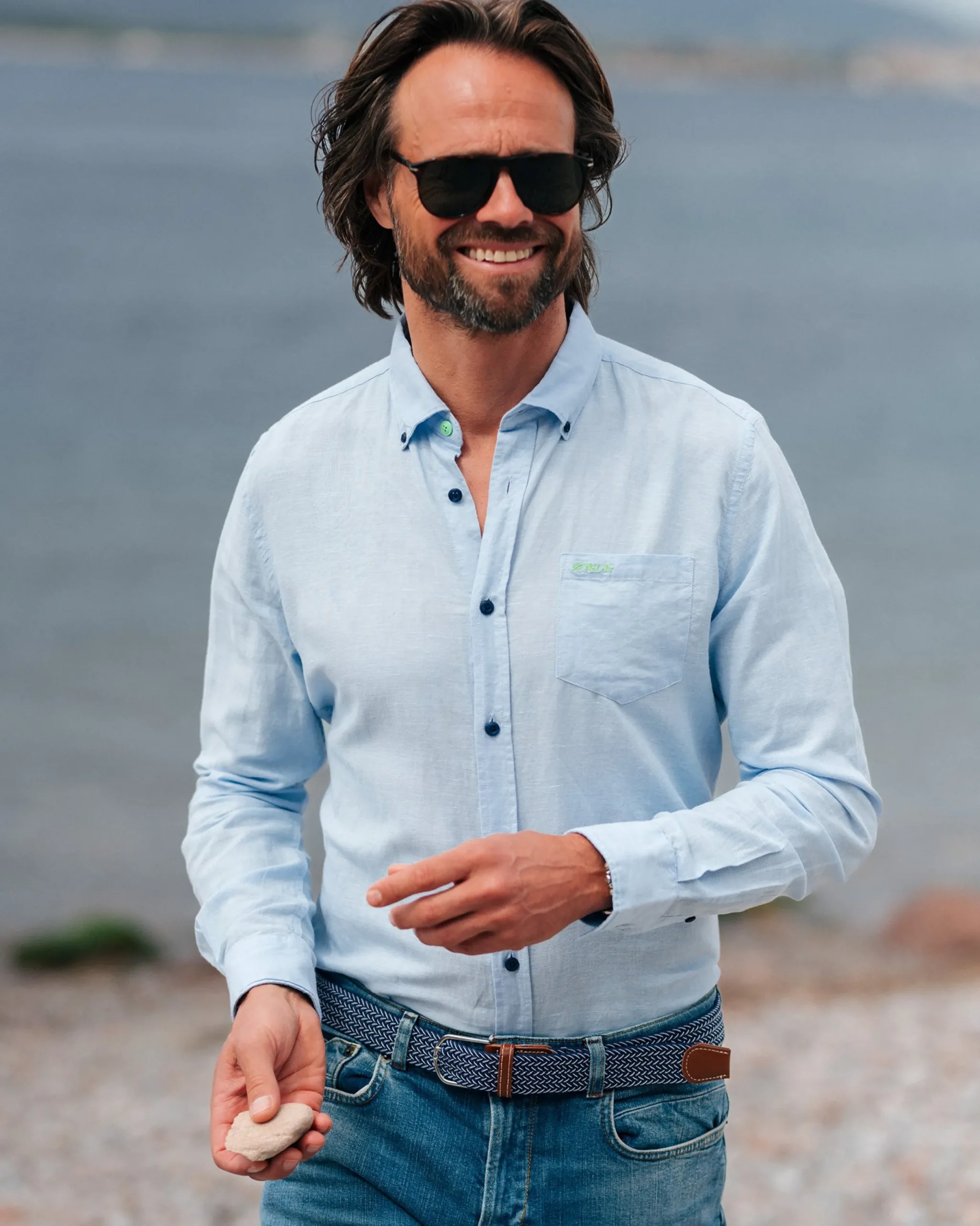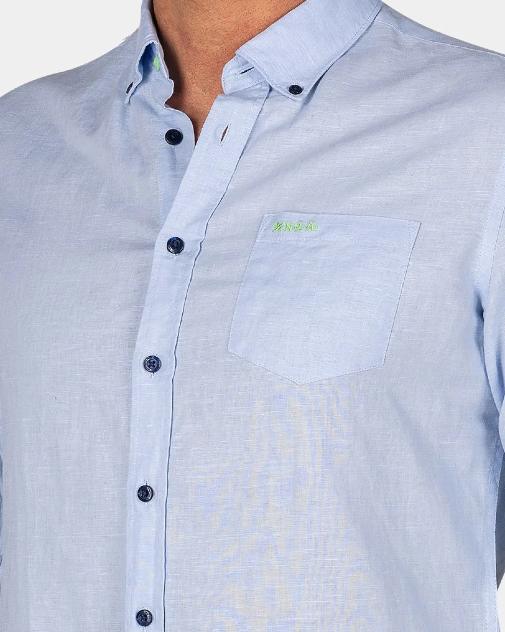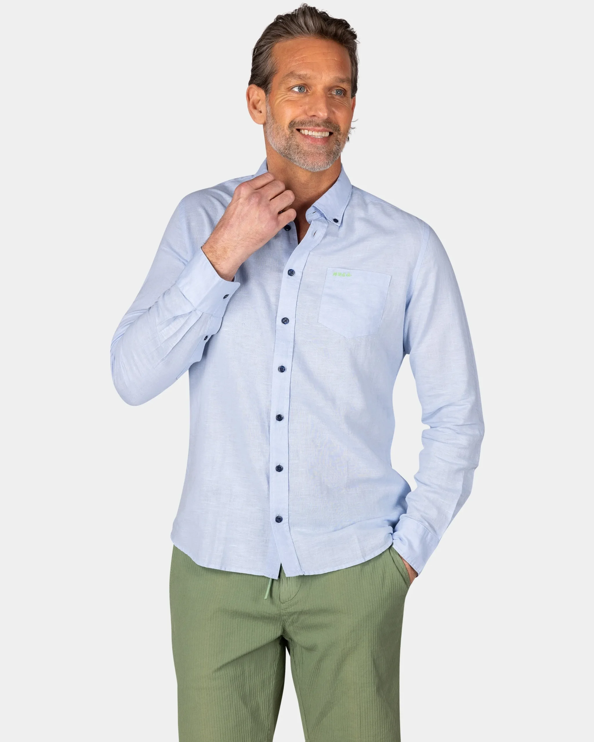 Linnen pastelblauw overhemd met lange mouw