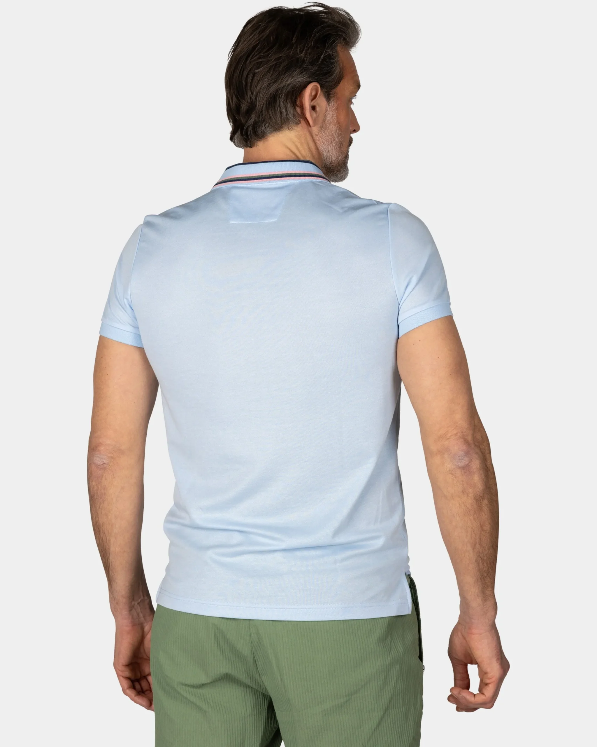 Pastelblauwe polo met gestreepte kraag