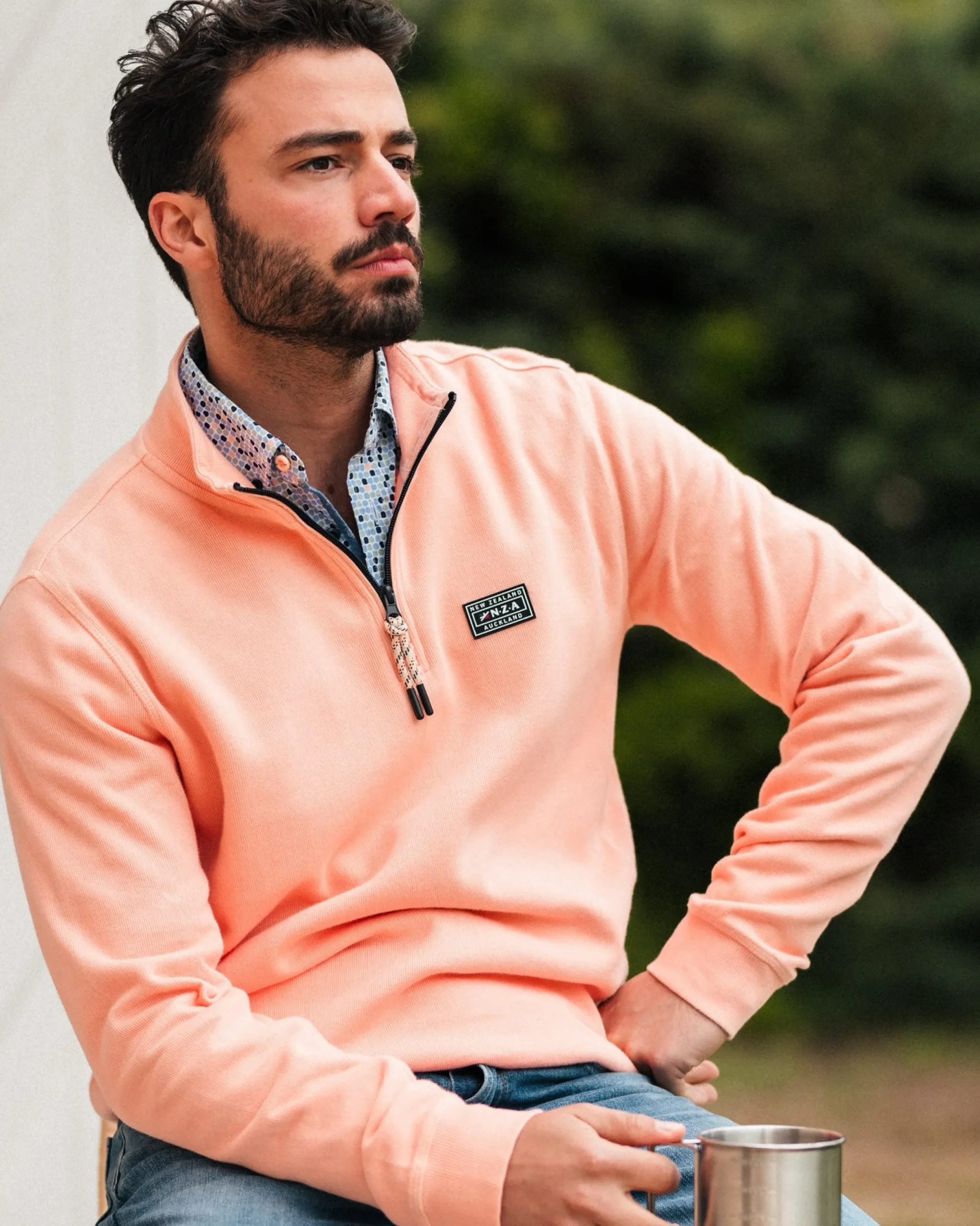 Perzikkleurige sweater met halve rits