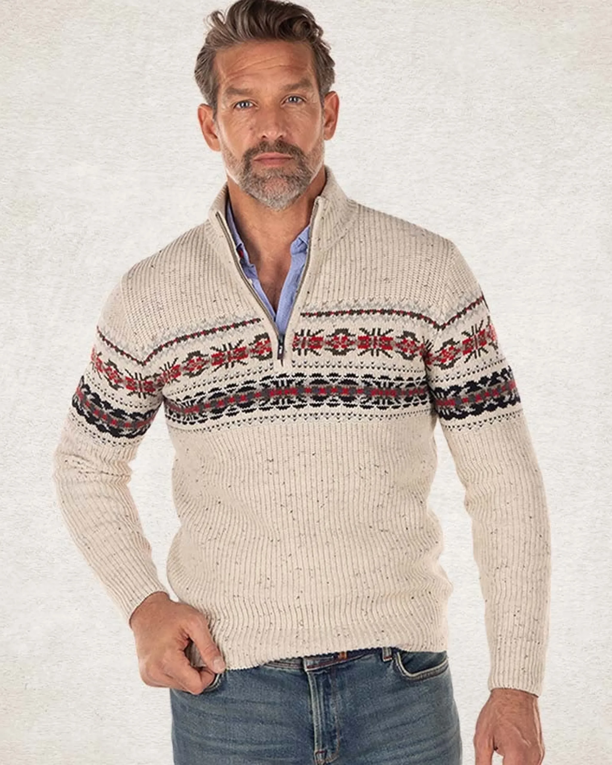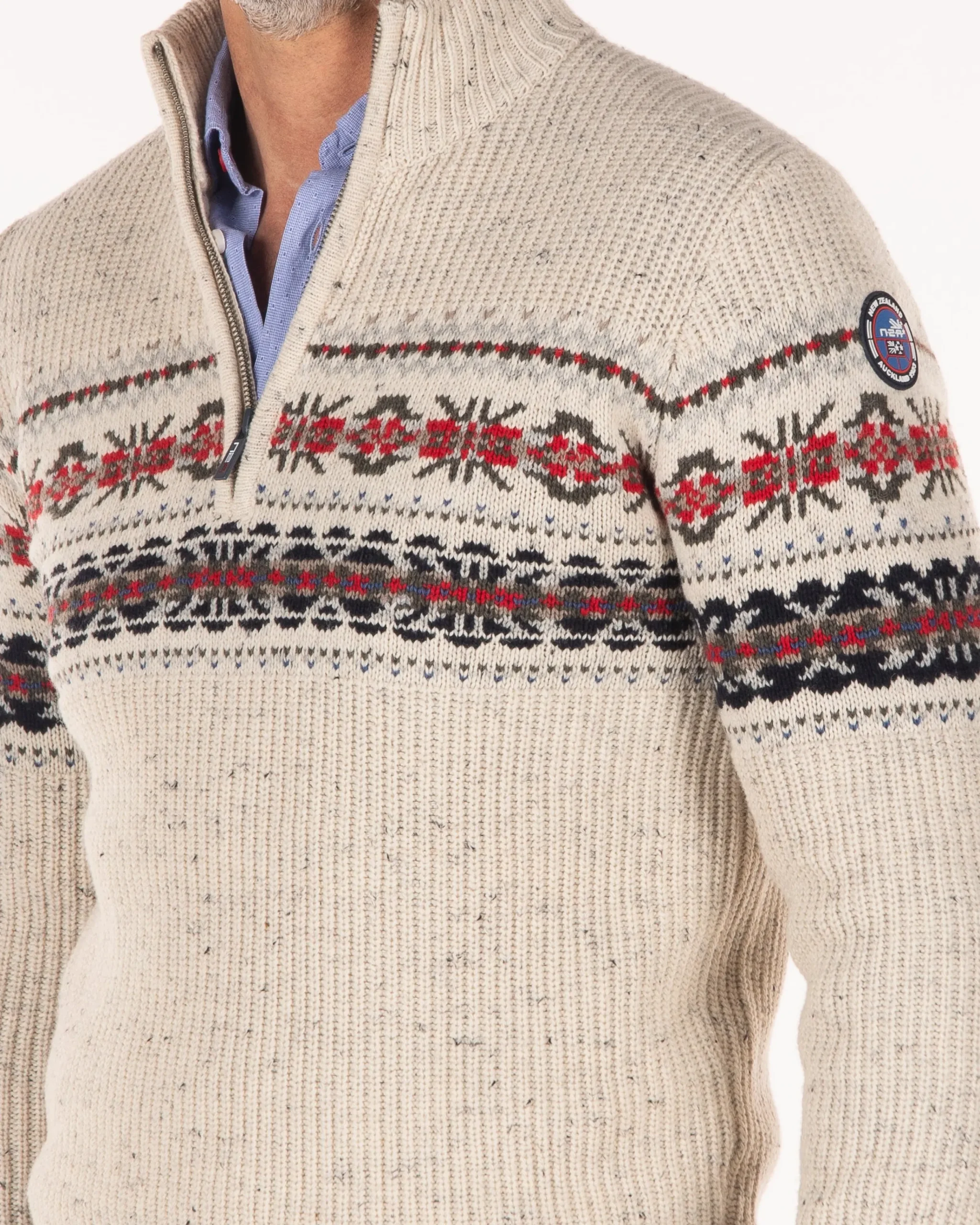 Pullover met halve rits van katoen en wol – Milky Ecru