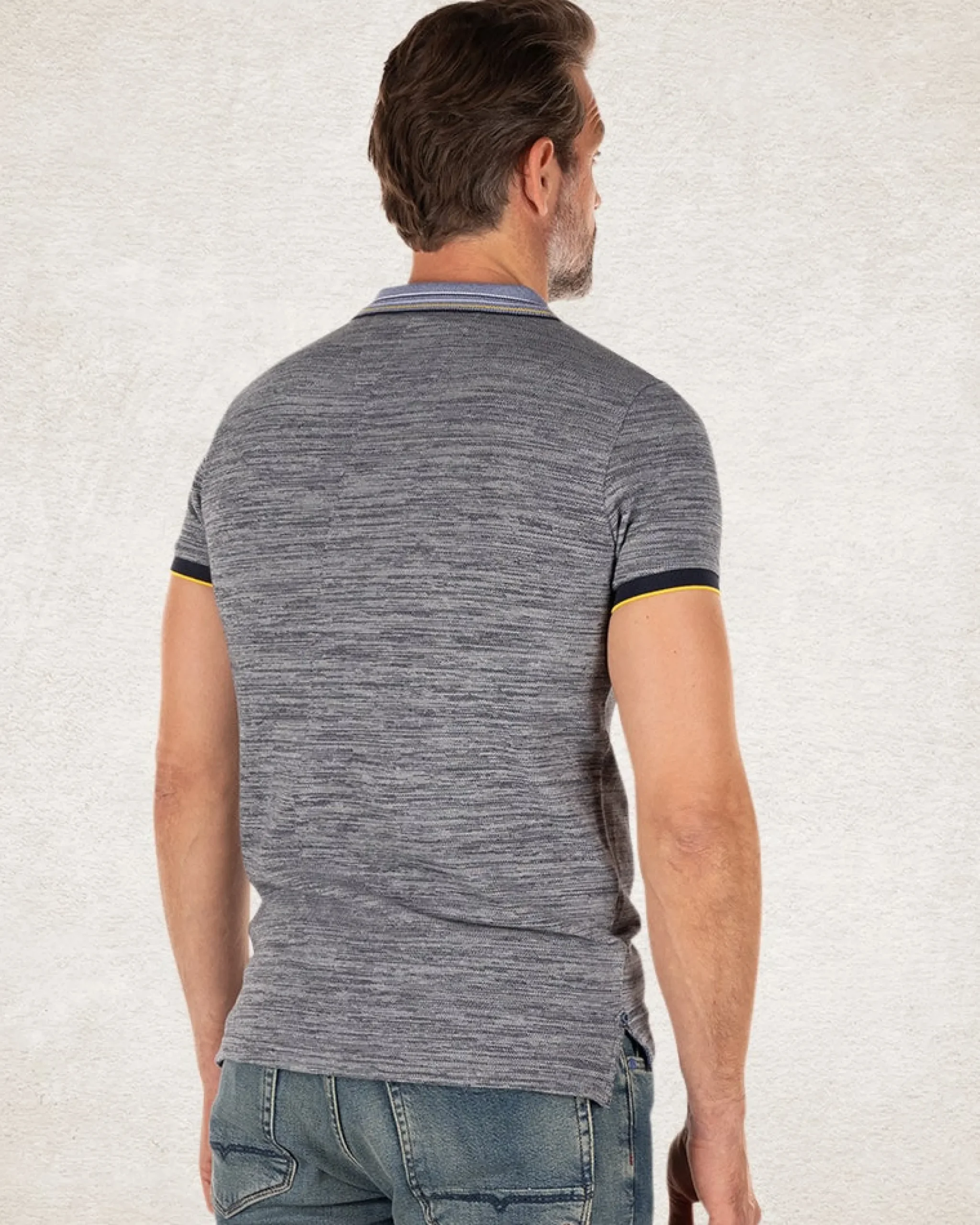 • Kraag met accentkleurige strepen